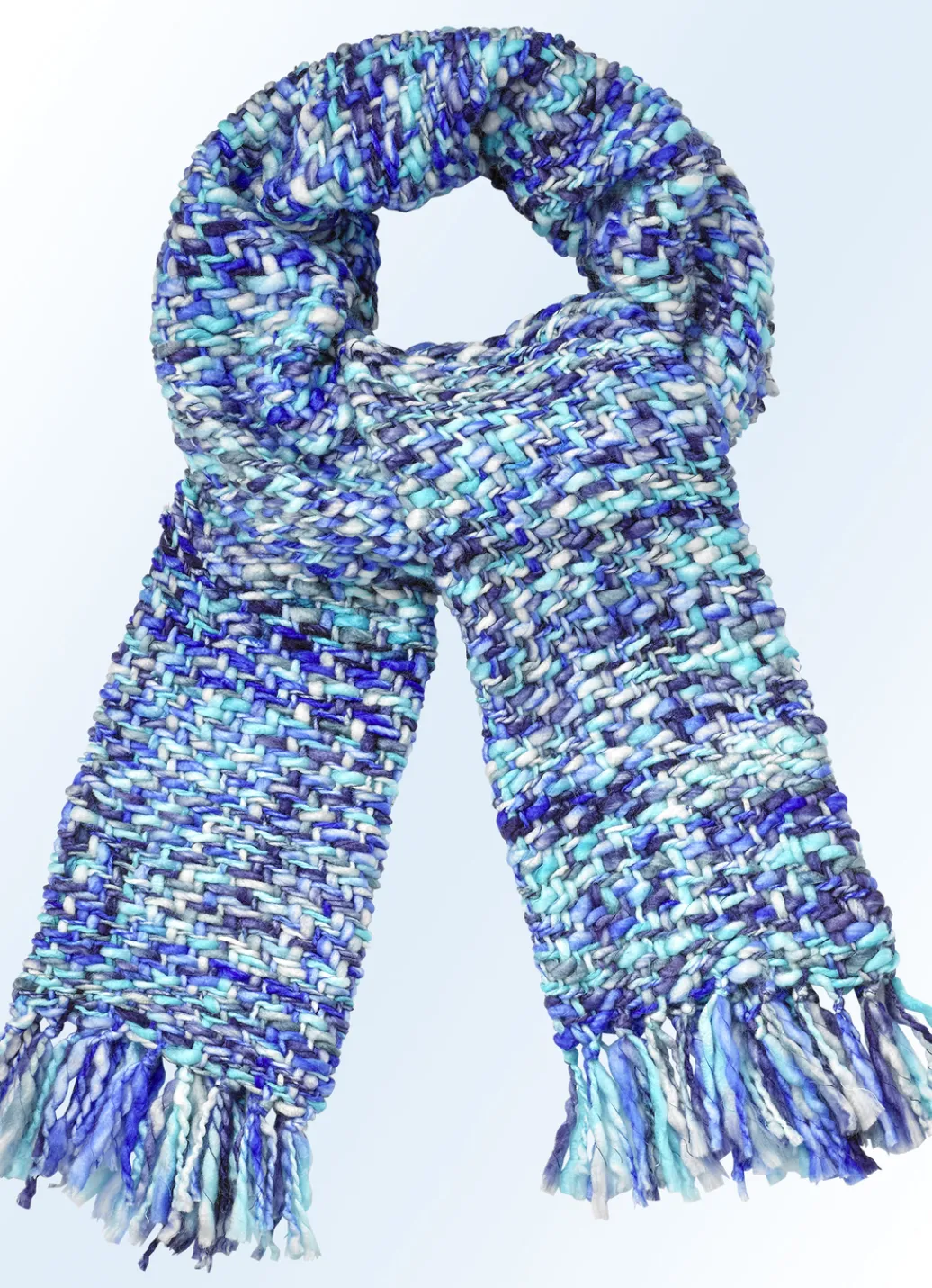 Schal mit Fransen an den Enden in Türkis-Bunt.