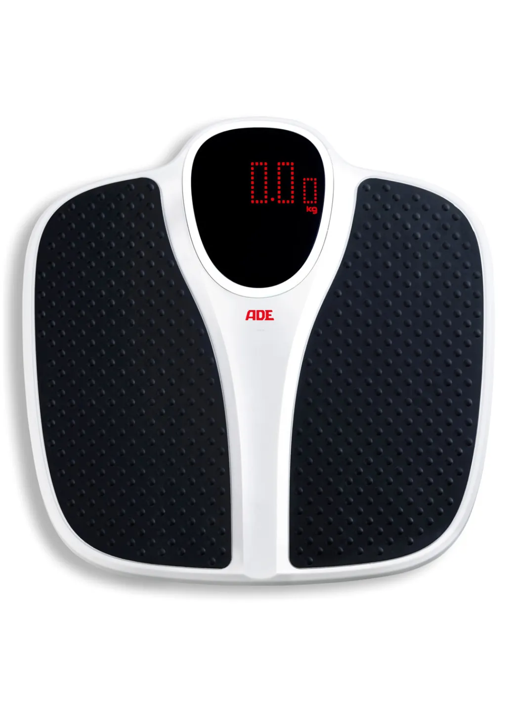 Digitale Personenwaage für besonders genaue Gewichtsermittlung in 50-Gramm-Schritten. Mit großer Antirutsch-Trittfläche und deutlich lesbarem rotem Dot-Matrix-Display sowie mit automatischer Abschaltautomatik. Automatische Nullstellung. Max. Tragkraft 200kg. Inkl. 4x 1,5 Volt AAA-Batterien. Maße: L33,8xB34xH3,6 cm