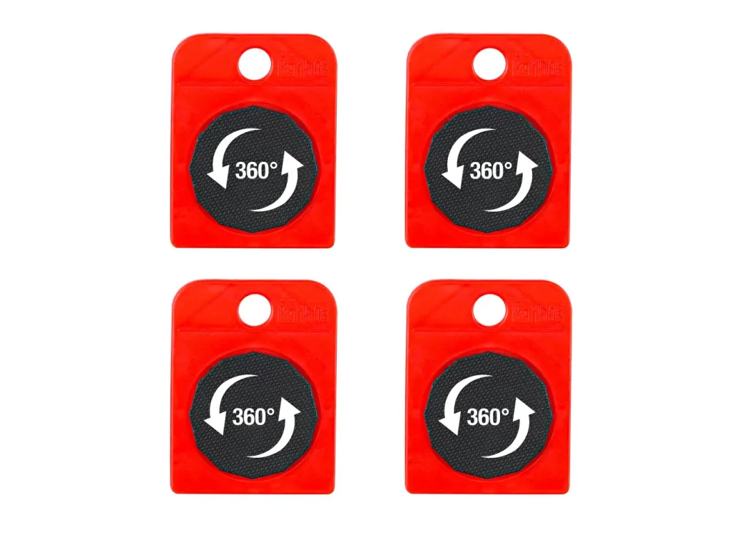 Möbel-Heber und 4 Transport-Rollen in Rot-Schwarz.