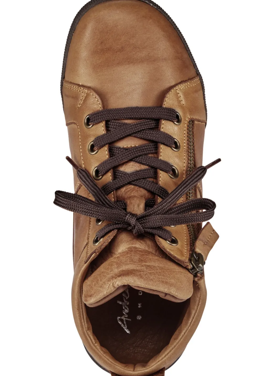 Boots aus weichem Rind-Nappaleder mit Schnürung: Seitenreißverschluss, Lederfutter, herausnehmbares Lederfußbett, leichte TPR-Riffelsohle sowie 10 mm Keilabsatz. Schafthöhe ca. 8 cm