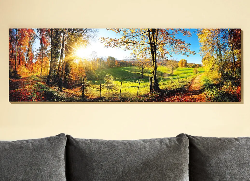 Hochwertige Kunstdruck „Zauberhafte Landschaft im Herbst“ in Grün.
