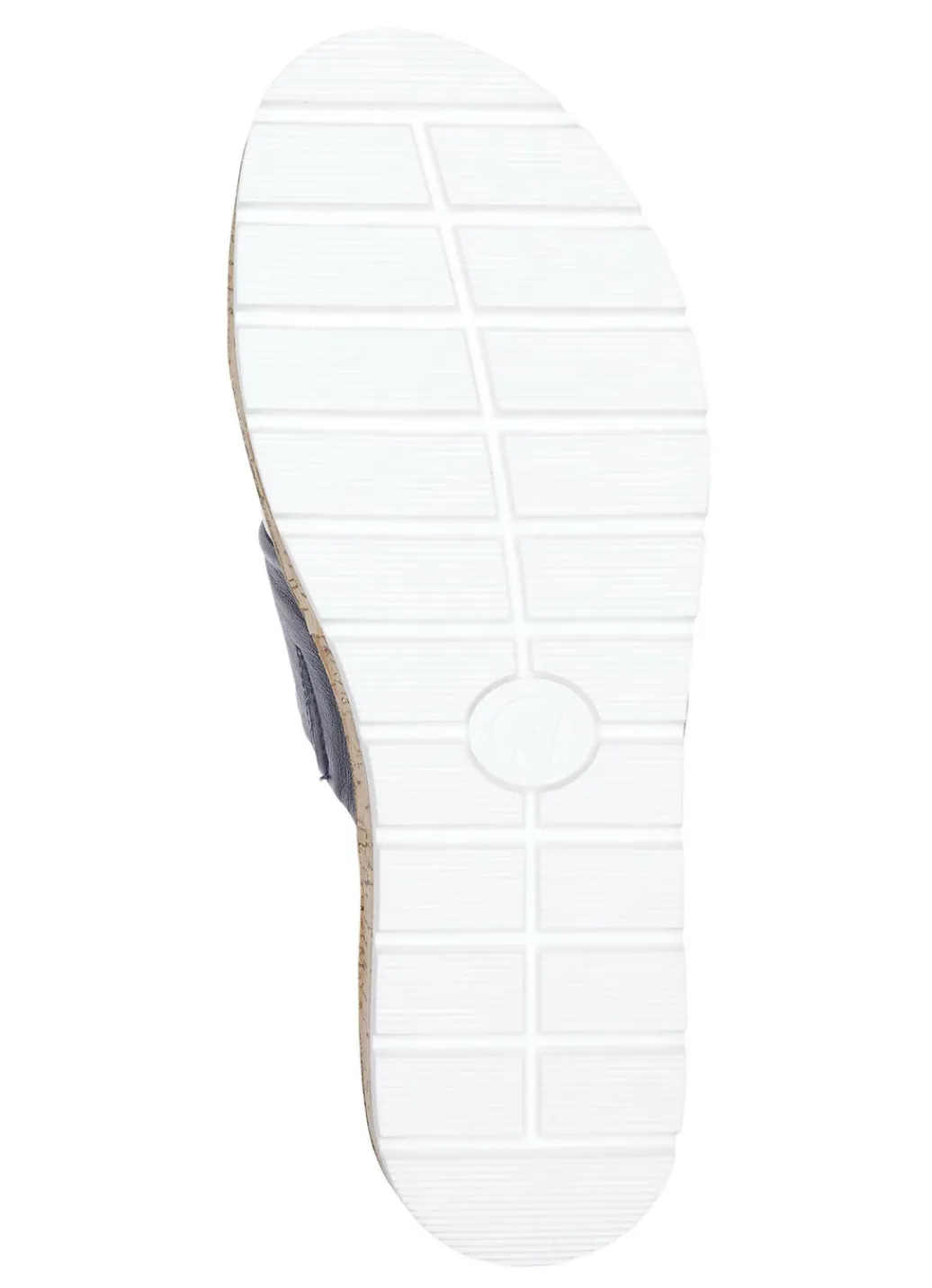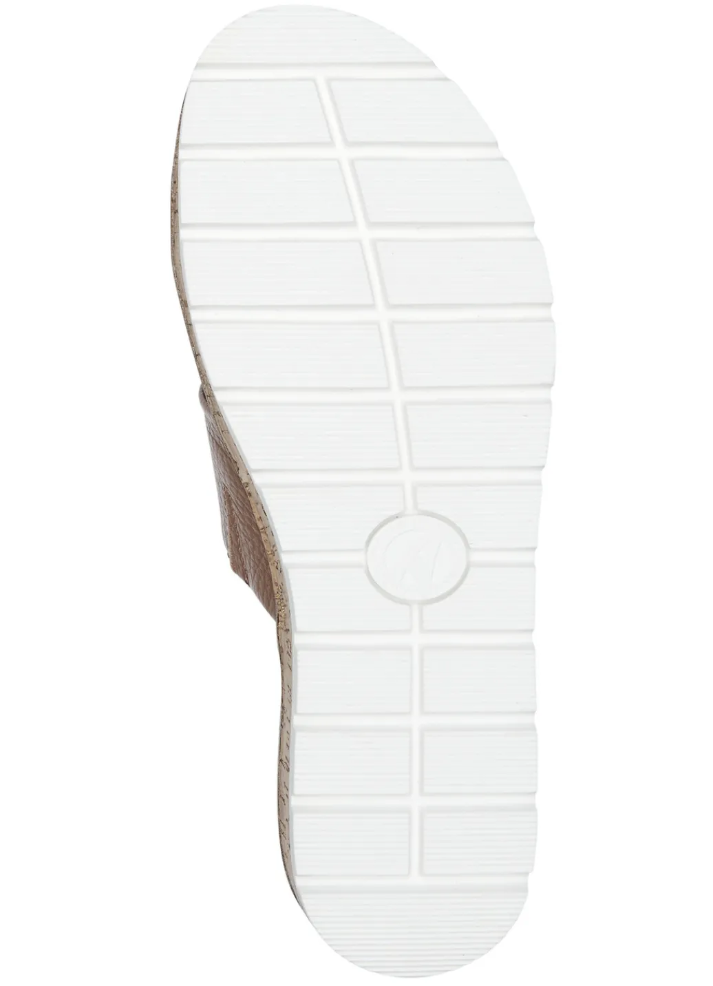 Pantoletten von ELENA EDEN, aus teilweise metallisiertem Nappaleder: Weite G, seitlicher Gummizug, Futter, herausnehmbares Fußbett, TR-Profilsohle mit Korkeinlage sowie 20 mm Keilabsatz