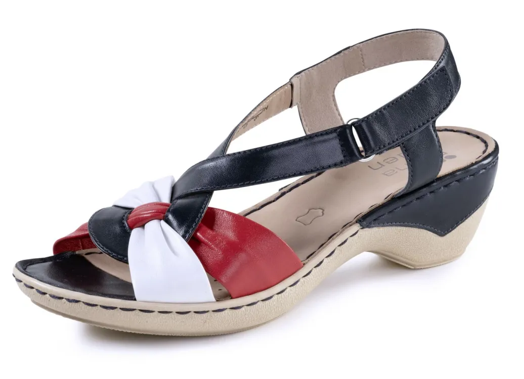 ELENA EDEN, elegante Damen-Sandaletten, Weite H, mit Klettspange in Schuhgröße 8 und in Blau-Weiss-Rot.