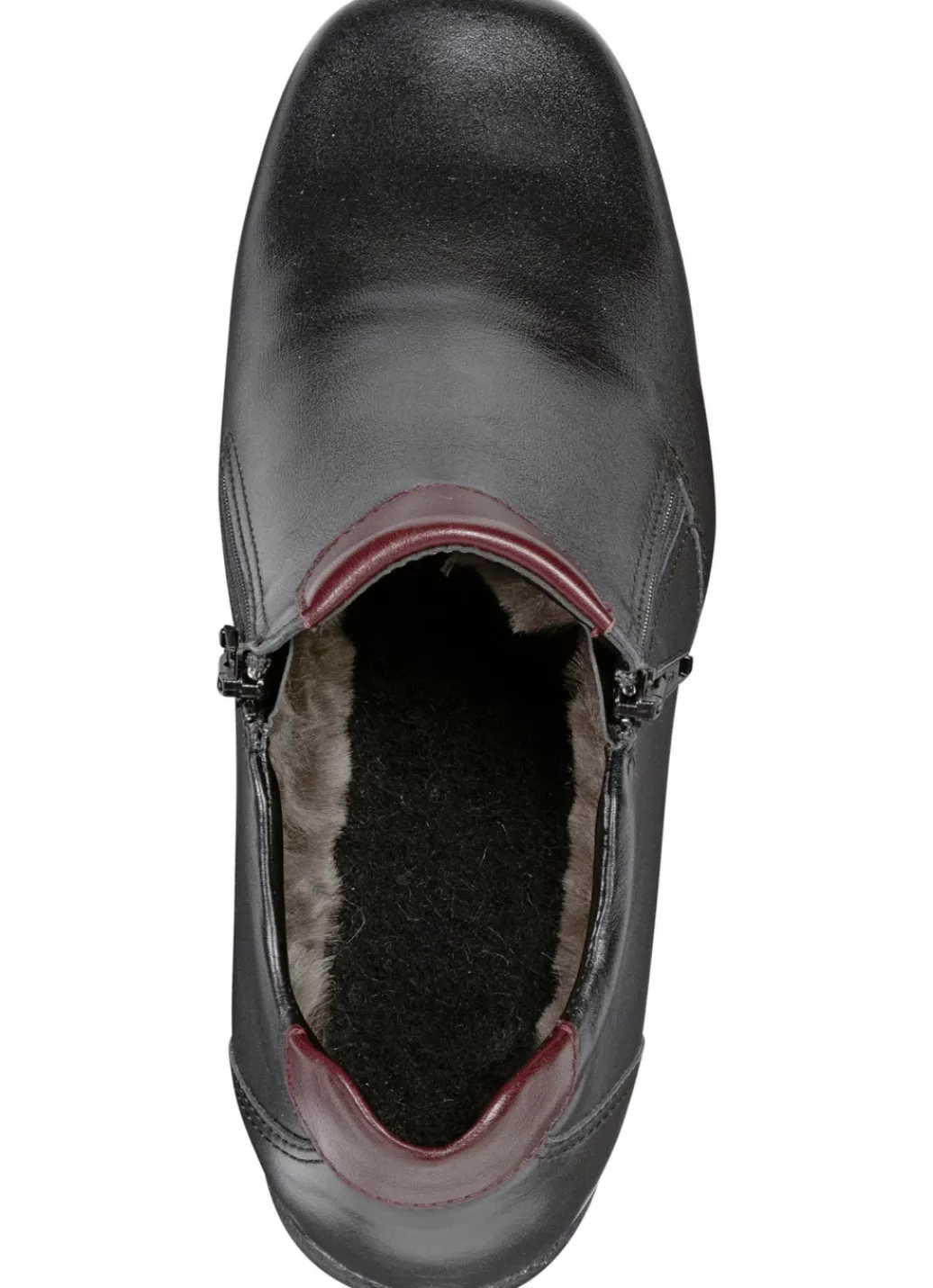 Mollige warme Boots von ELENA EDEN aus Nappaleder in Schwarz-Bordeaux, mit zwei Seitenreißverschlüssen: Weite H, echtes Lammfellfutter, warme Wolldecksohle, leichte Synthetik-Profilsohle sowie 25 mm Keilabsatz. Schafthöhe ca. 7 cm
