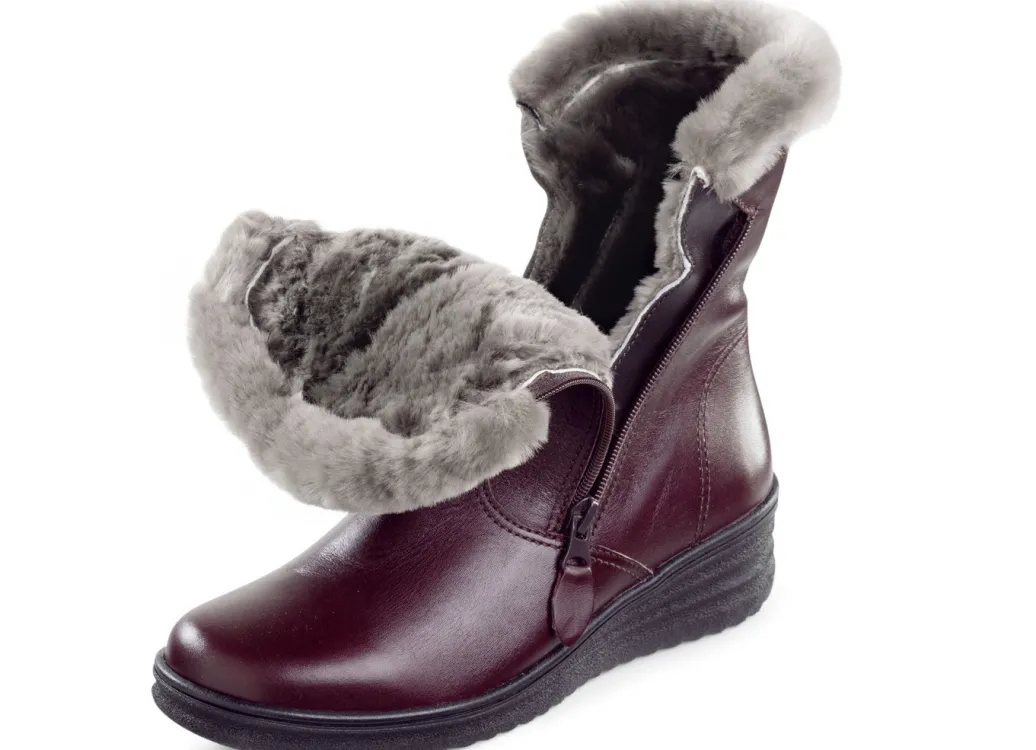 Stiefeletten von ELENA EDEN aus bestem Nappaleder mit flauschigem Lammfellbesatz: in Weite H, zwei seitliche Reißverschlüsse, Warmfutter aus echtem Lammfell, warme Wolldecksohle, leichte Synthetik-Profilsohle sowie 30 mm Keilabsatz. Schafthöhe ca. 19 cm