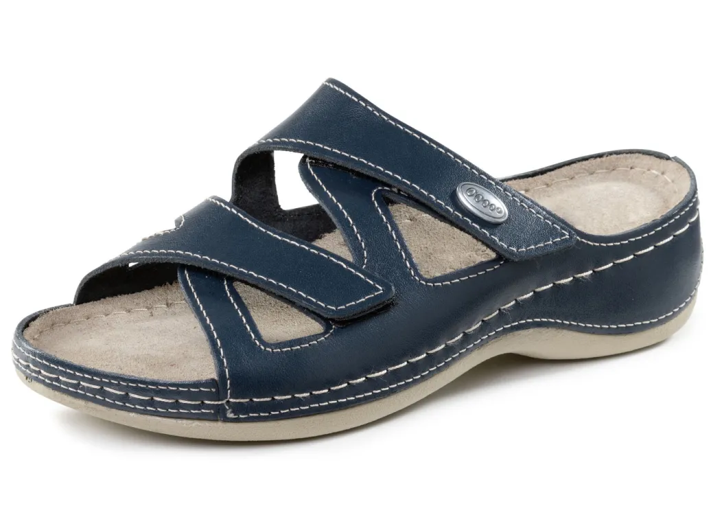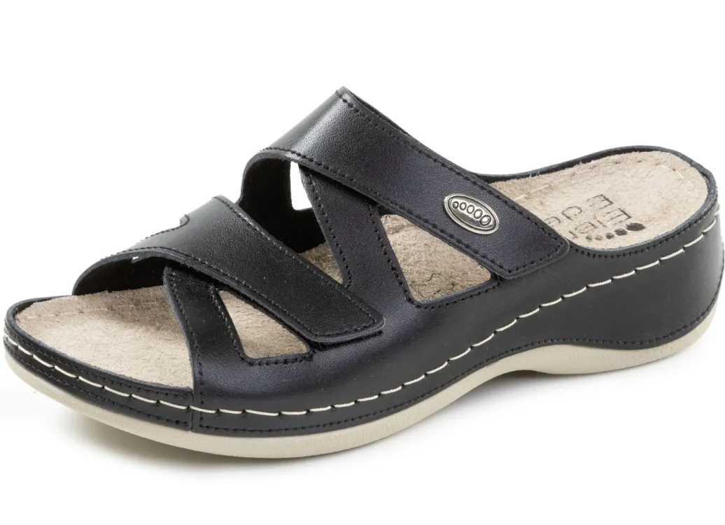 Pantolette von ELENA EDEN, aus Nappaleder: Weite G, zwei Klettspangen, gepolstertes Lederfußbett, leichte PU-Laufsohle sowie 30 mm Keilabsatz