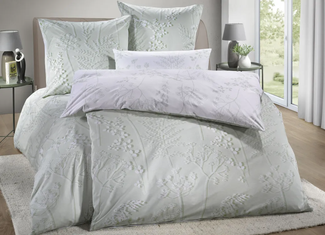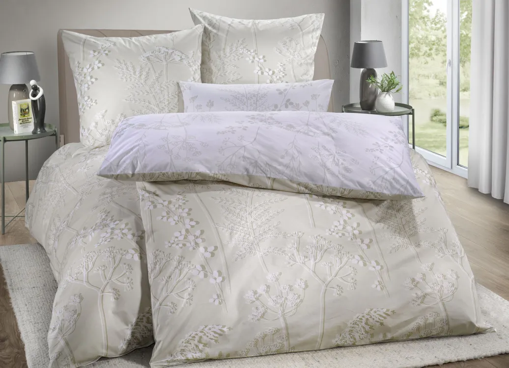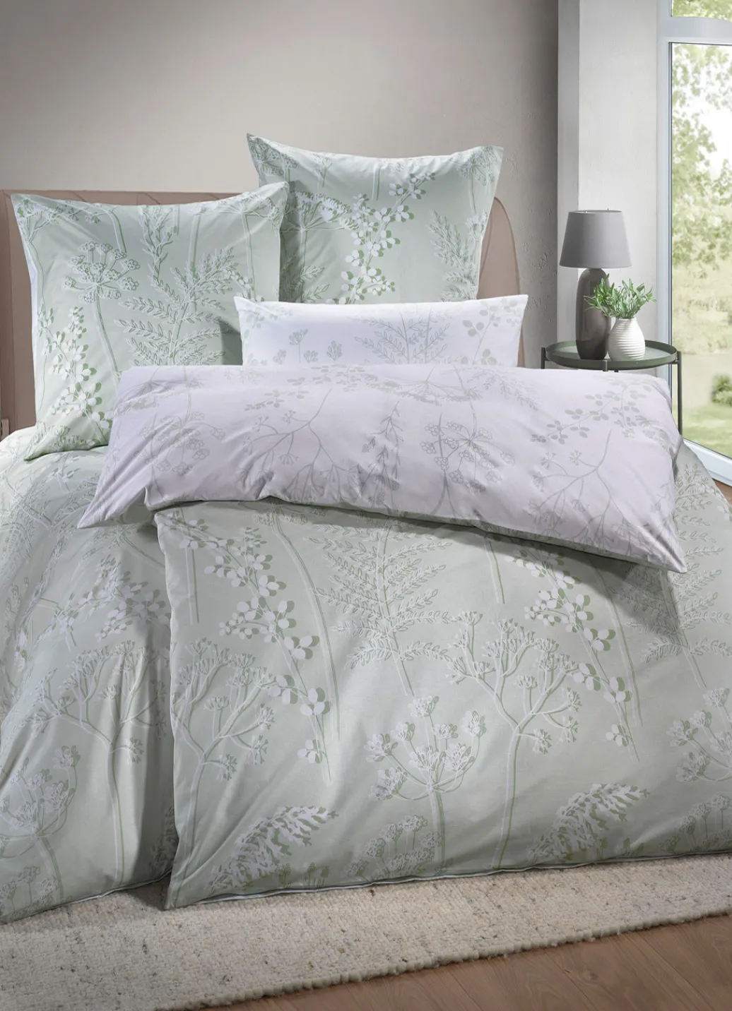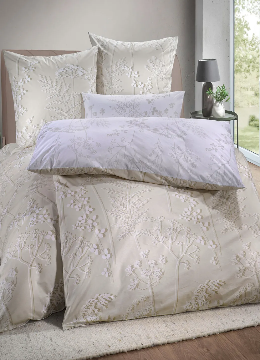 Die naturnahen Gräser und Blätter auf dieser bedruckten Wendebettwäsche-Garnitur von „Florella“ verbreiten ein heimeliges Wohlfühl-Ambiente. Mit praktischem Reißverschluss. Die Qualität: Soft-Renforcé aus 100% Baumwolle. Waschbar bis 60 °C und trocknergeeignet.