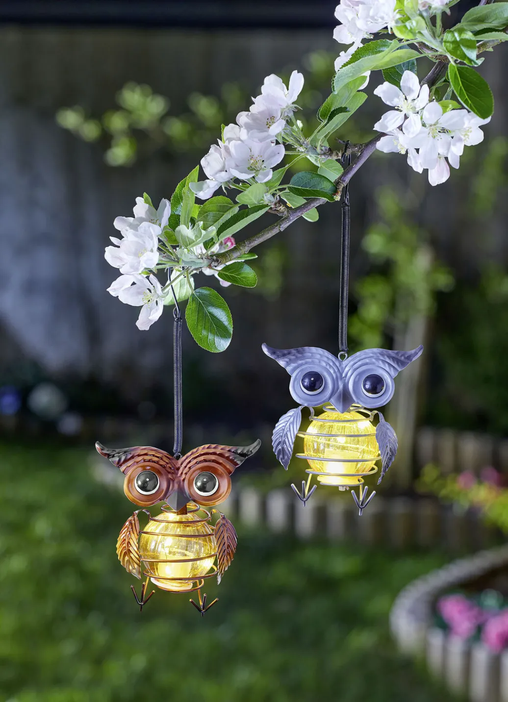 Solar-Eulen-Hänger, 2er-Set in Bunt.