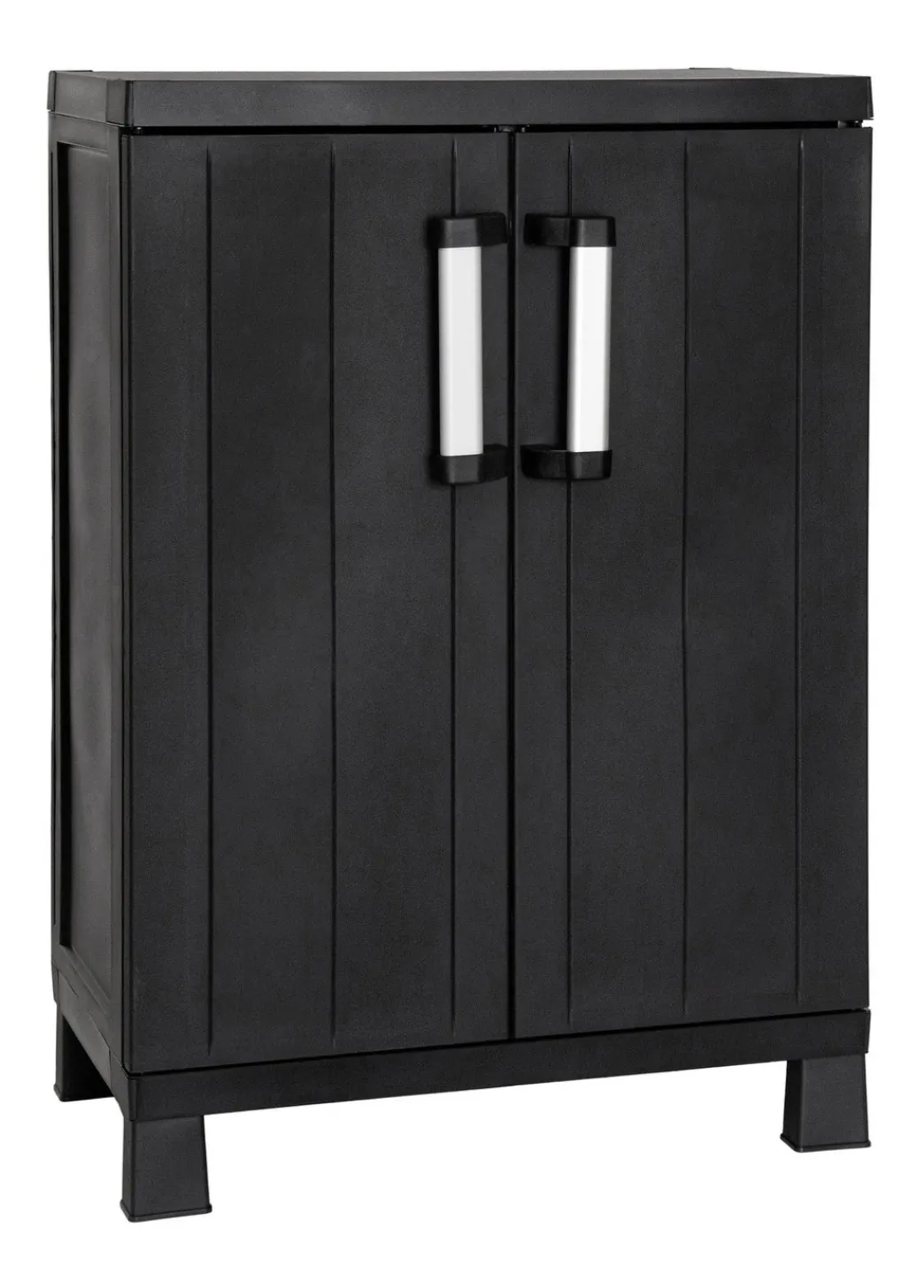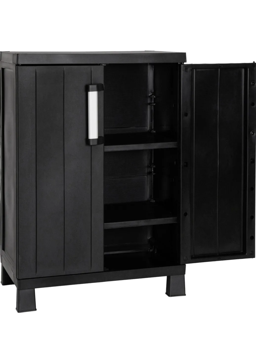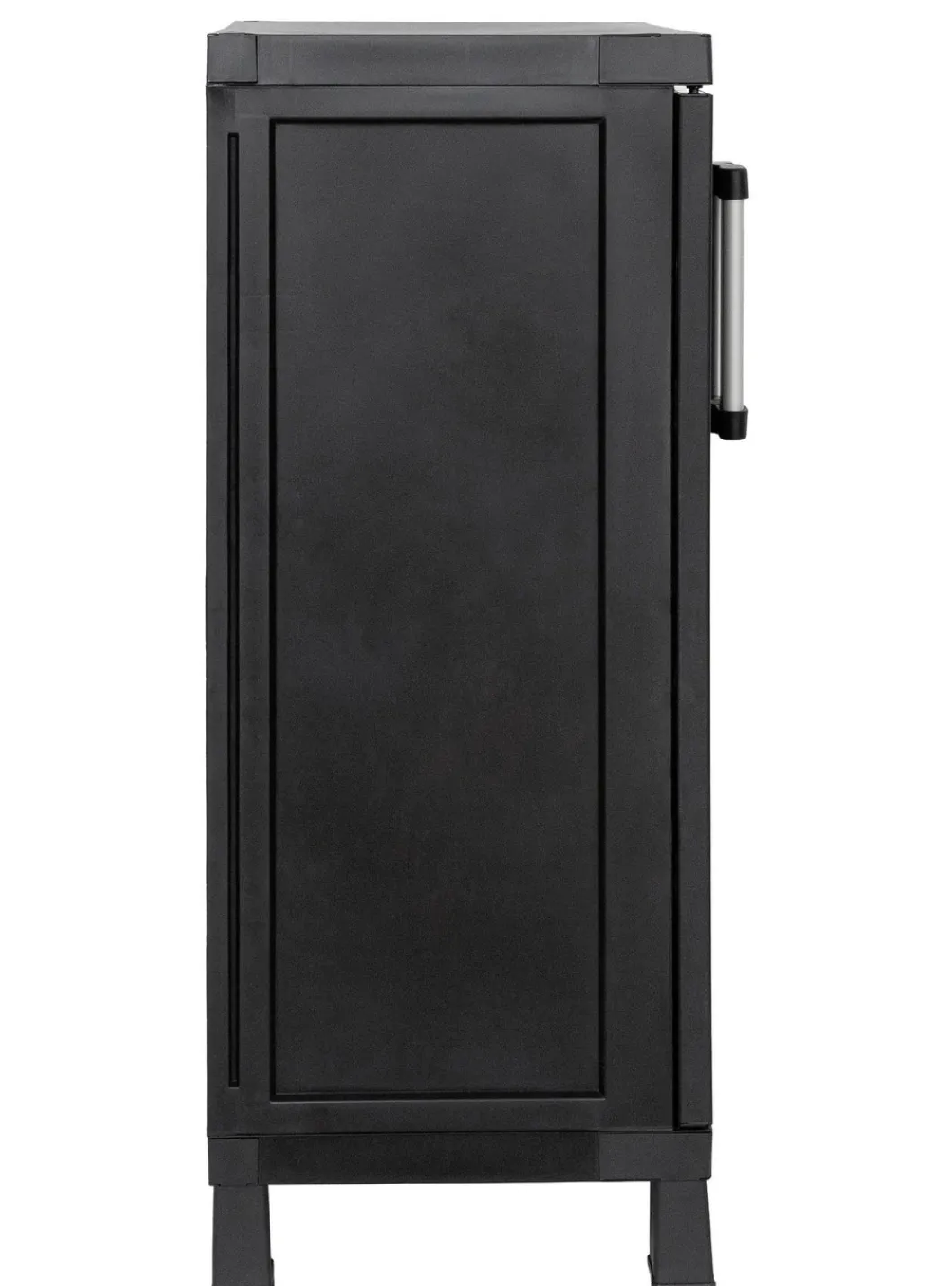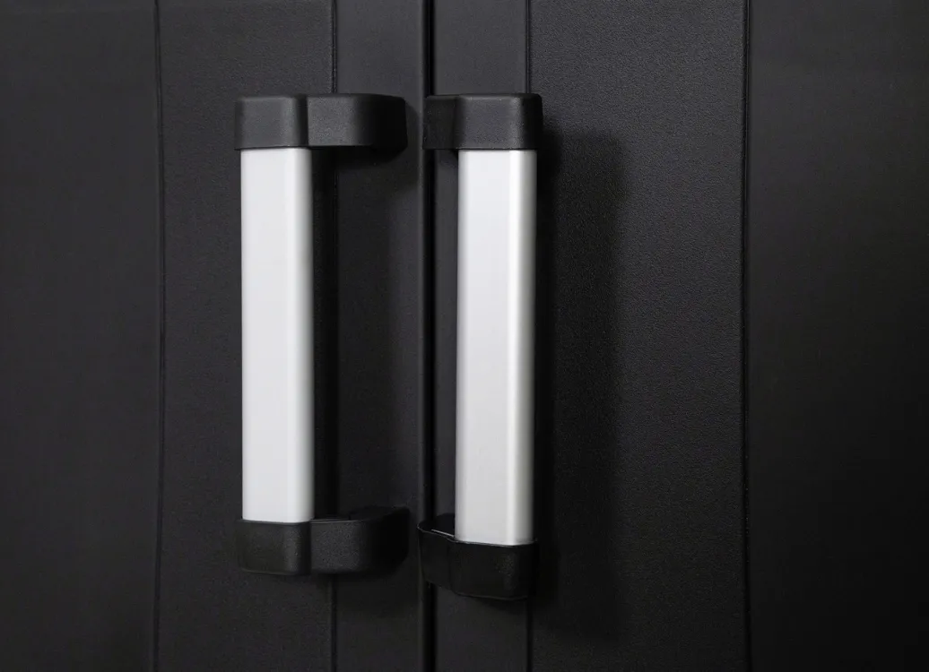 Diese Geräteschränke sind ideal für Keller, Abstellraum oder Gartenhaus. Sie überzeugen mit modernem Design und funktionalen Details. Der Holzlamellen-Effekt verleiht eine ansprechende Optik. Aluminium-Griffe für eine lange Lebensdauer, 4 rutschfeste Gummipads für stabilen Stand, selbst auf glatten Böden. Mit einem Vorhängeschloss verschließbar (nicht im Lieferumfang). Mit Aufbauanleitung.