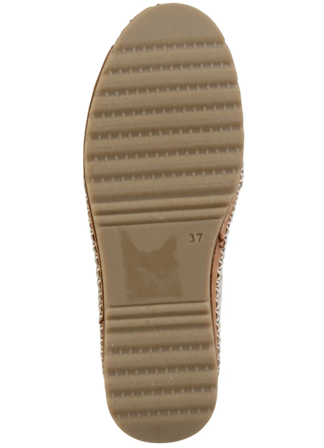 Slipper aus luftig perforiertem, geprägtem Nappaleder mit Lederbesätzen in Camel: Weite G, seitliche Gummizüge, Lederfutter, herausnehmbares Lederfußbett, leichte TPU-Profilsohle sowie 10 mm Keilabsatz