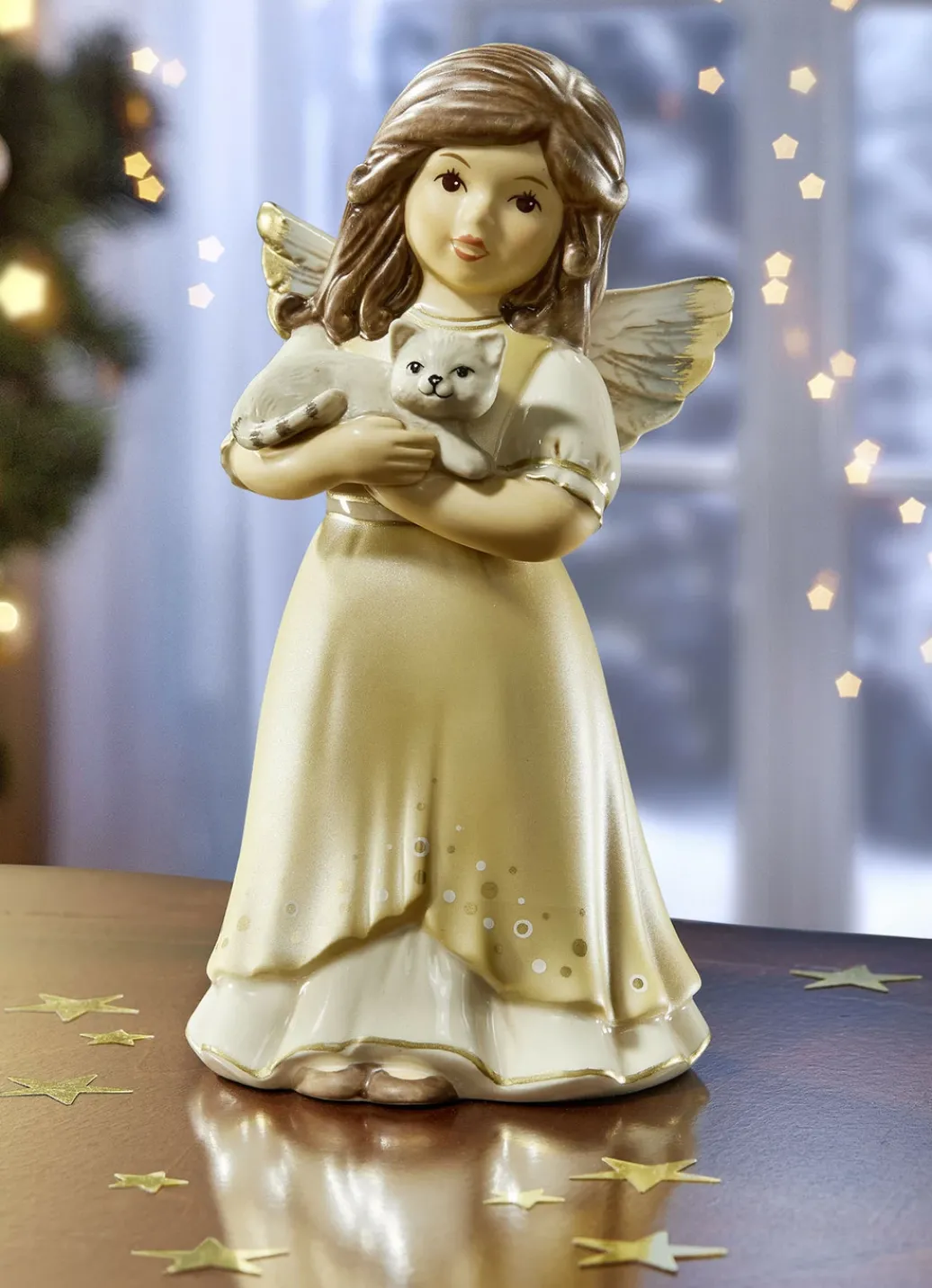 Engel mit Katze aus dem Hause Goebel in Champagner.