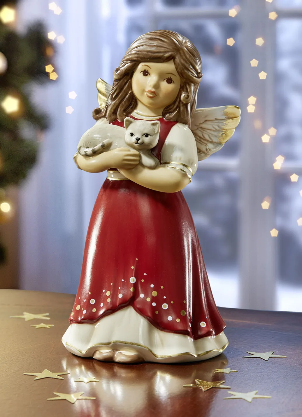 Weihnachtszeit ist Kuschelzeit! Das findet auch der Engel, der sich liebevoll um die Katze auf seinem Arm kümmert. Im traditionsreichen Hause Goebel aus Feinsteingut von Hand gefertigt und liebevoll bemalt. Maße: B7xH14xT7 cm.