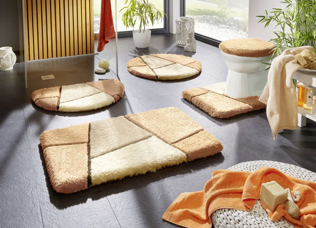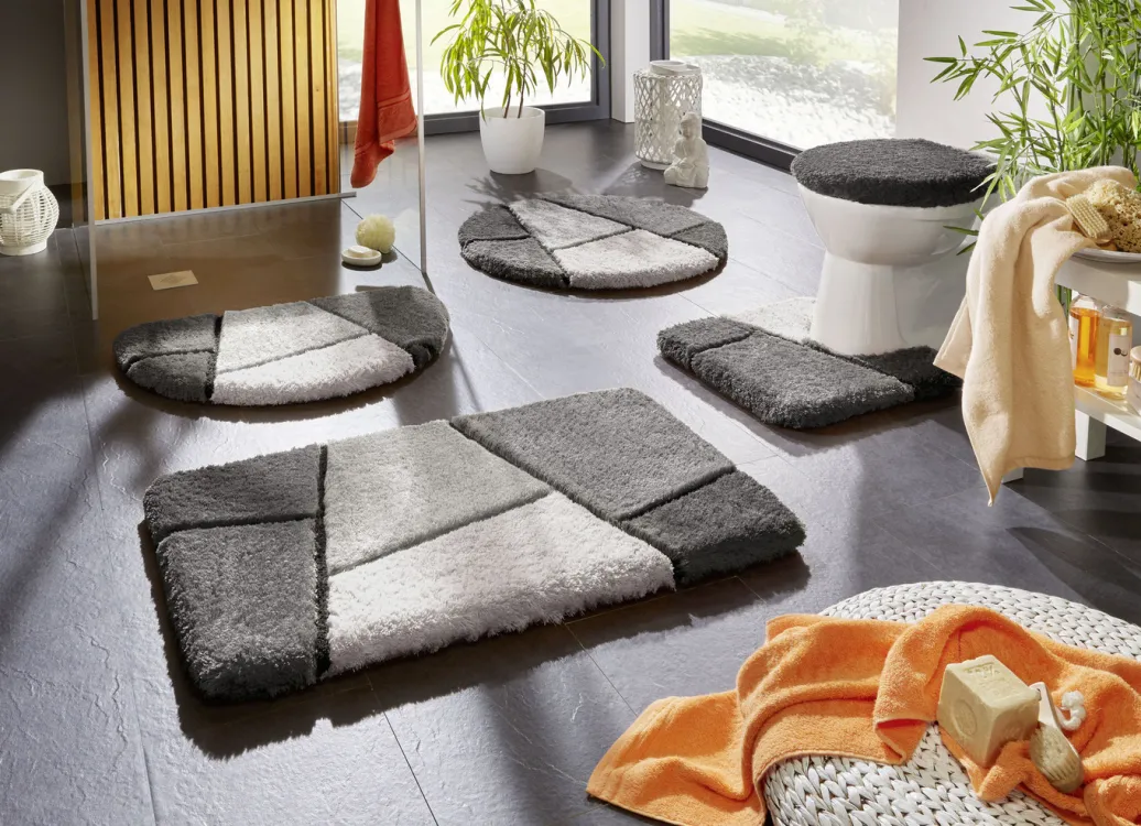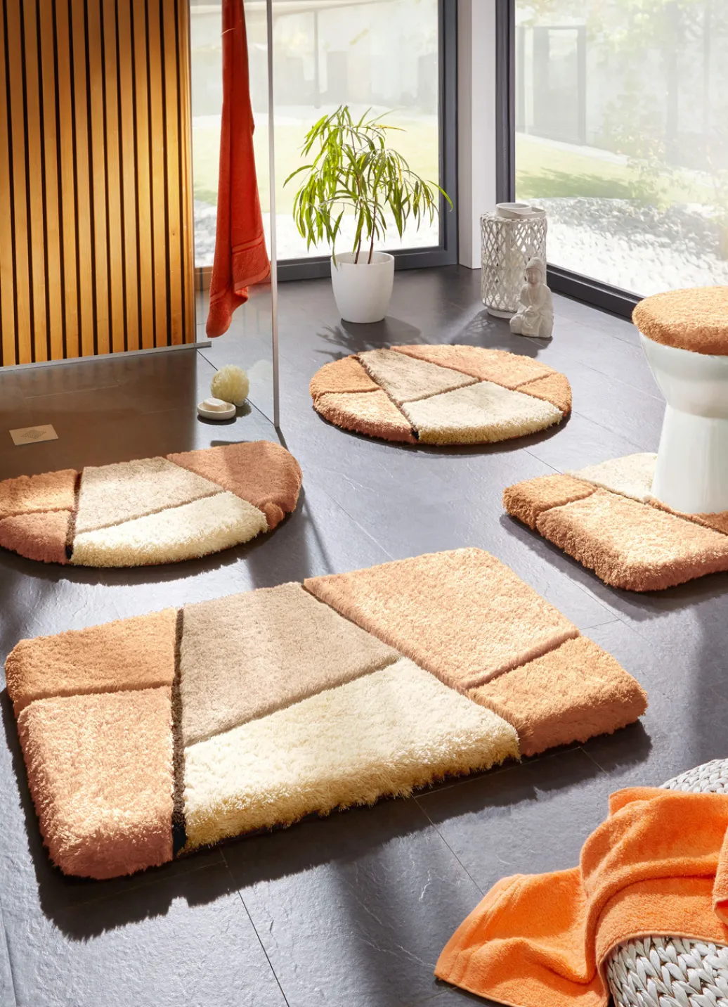Farbenfrohe Badgarnitur mit rutschhemmender Rückseite