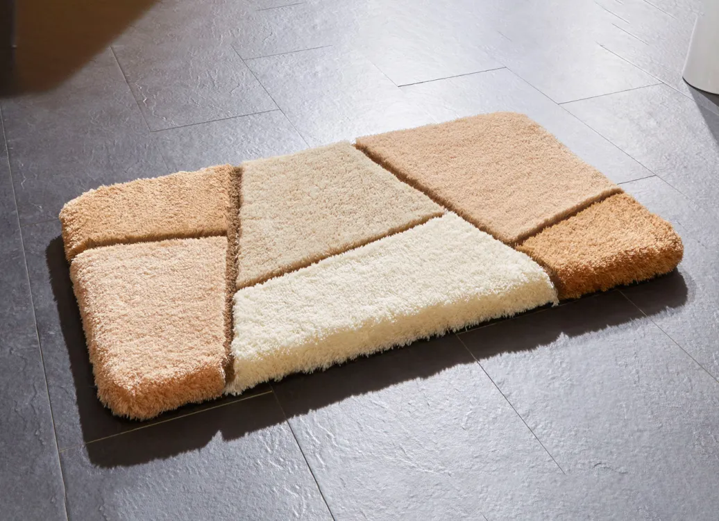 Farbenfrohe Badgarnitur mit rutschhemmender Rückseite in Größe 101 (Teppich, 50/ 90 cm) und in Creme.