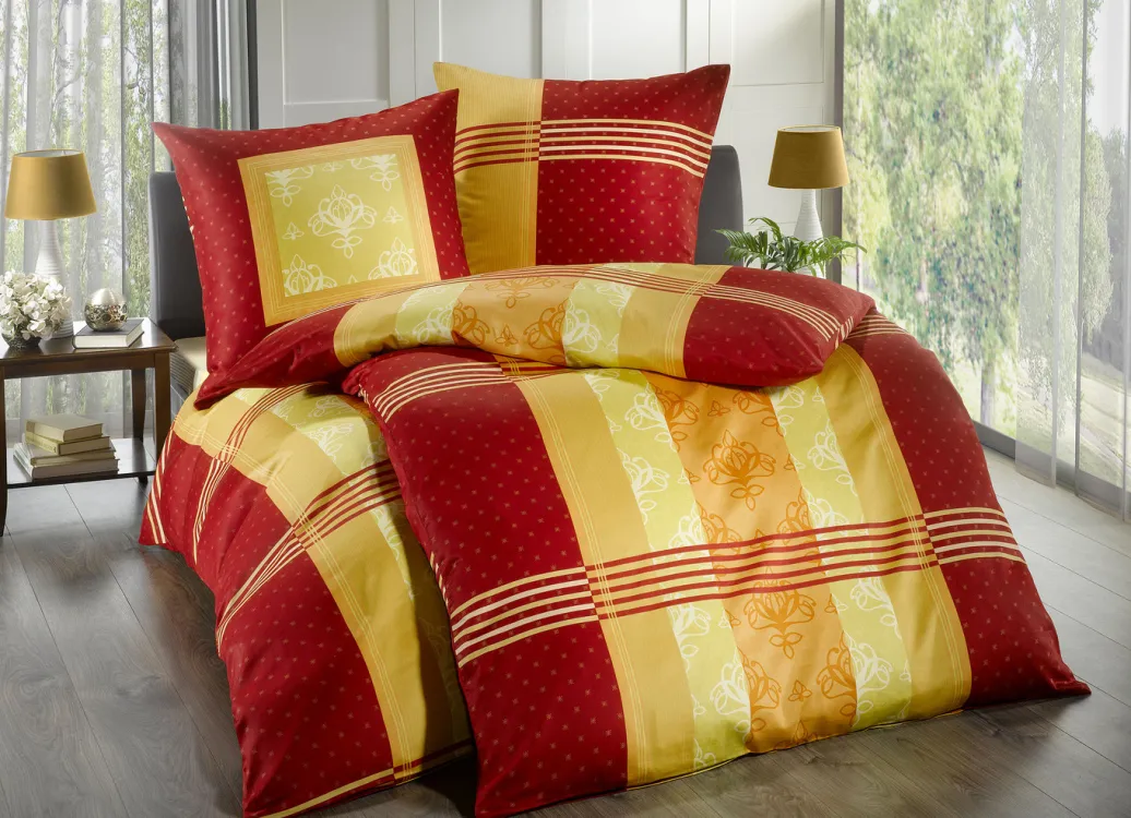 Elegante Bettwäsche-Garnitur von Kaeppel in Größe 111 (40/80 cm + 135/200 cm) und in Rot.