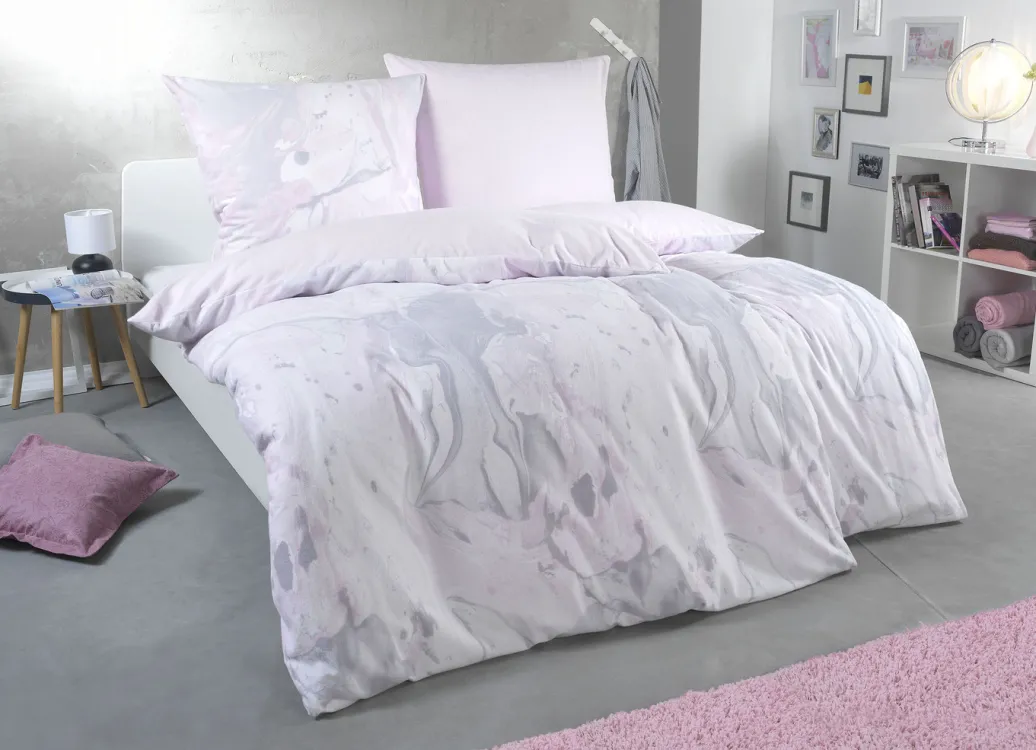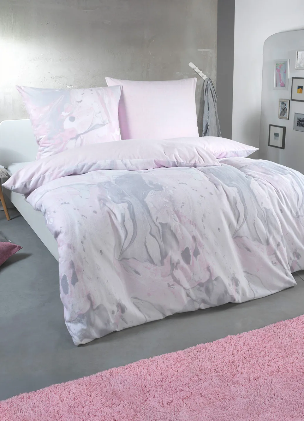 Traumhafte Feinbiber Bettwäsche in Größe 111 (40×80 cm + 135×200 cm) und in Rosé.
