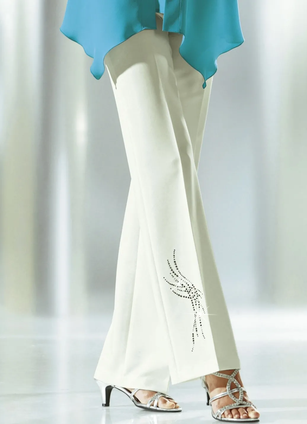 Hose mit schmückendem Strasszier-Motiv in Ecru und in Größe 18.
