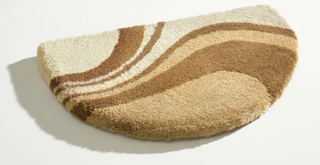 Badgarnitur von Kleine Wolke mit rutschhemmender Rückseite in Größe 100 (Vorleger halbrund, 50/ 80 cm) und in Beige.