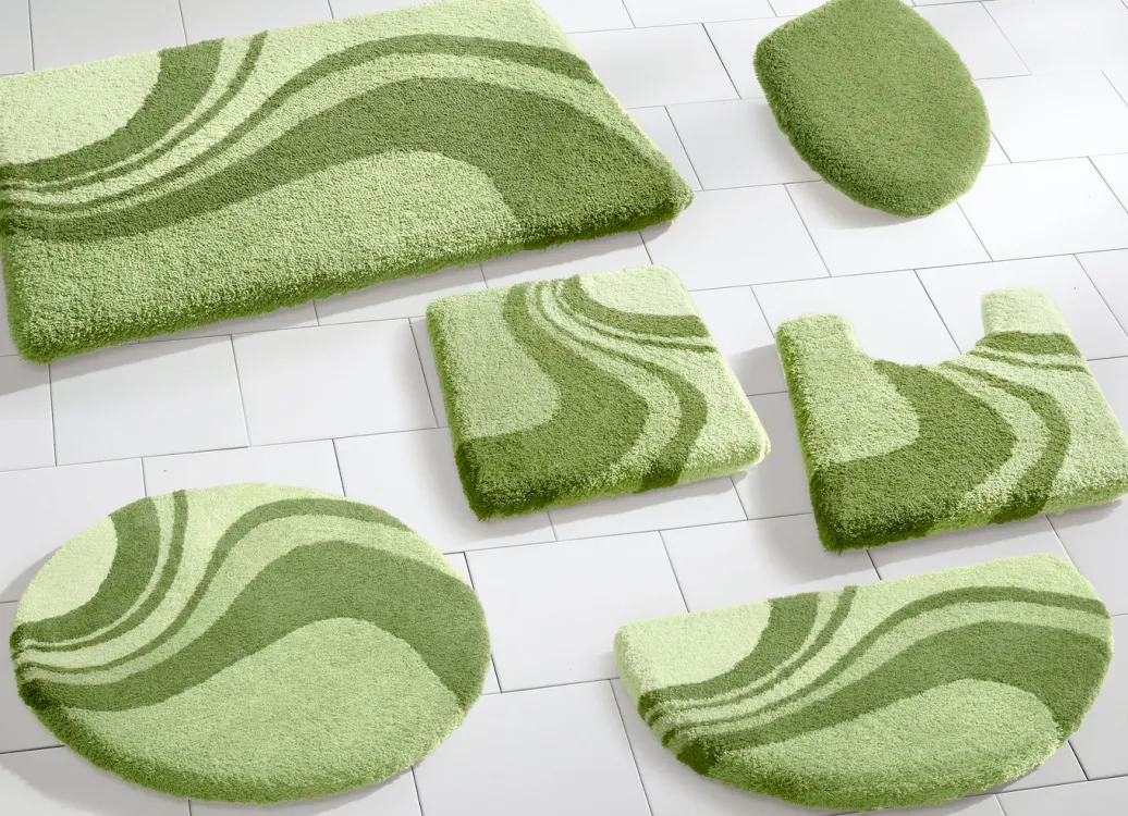 | Size | 100 (Vorleger halbrund, 50/ 80 cm), 101 (Teppich, 50/ 90 cm), 102 (Teppich, 60/100 cm), 103 (Teppich, 70/120 cm), 106 (Teppich rund, ø 90 cm), 108 (Stand-WC-Vorleger, 50/ 55 cm), 109 (Hänge-WC-Vorleger, 50/ 55 cm), 112 (WC-Deckelbezug, 47/ 50 cm) |