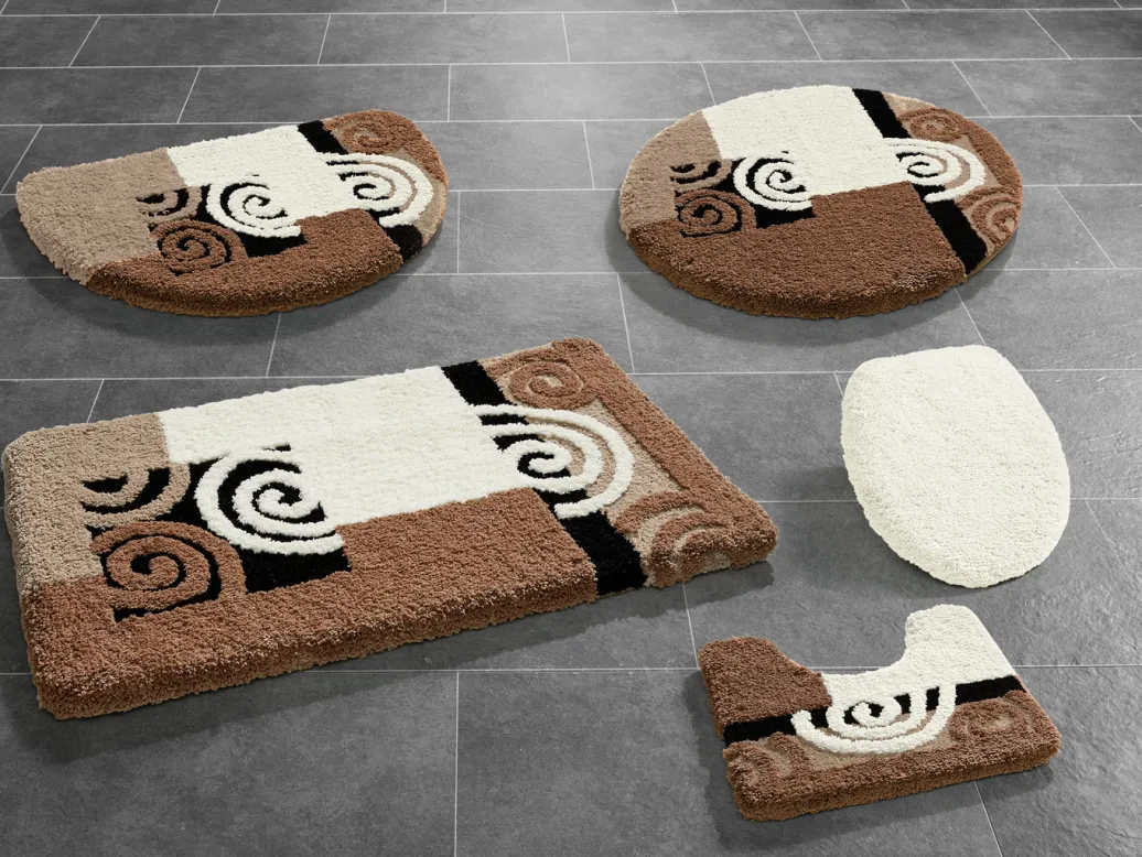 | Size | 100 (Vorleger halbrund, 50/ 80 cm), 101 (Teppich, 50/ 80 cm), 102 (Teppich, 60/100 cm), 104 (Teppich, 70/120 cm), 106 (Teppich rund, ø 80 cm), 108 (Stand-WC-Vorleger, 50/ 55 cm), 109 (Hänge-WC-Vorleger, 50/ 55 cm), 112 (WC-Deckelbezug, 47/ 50 cm) |