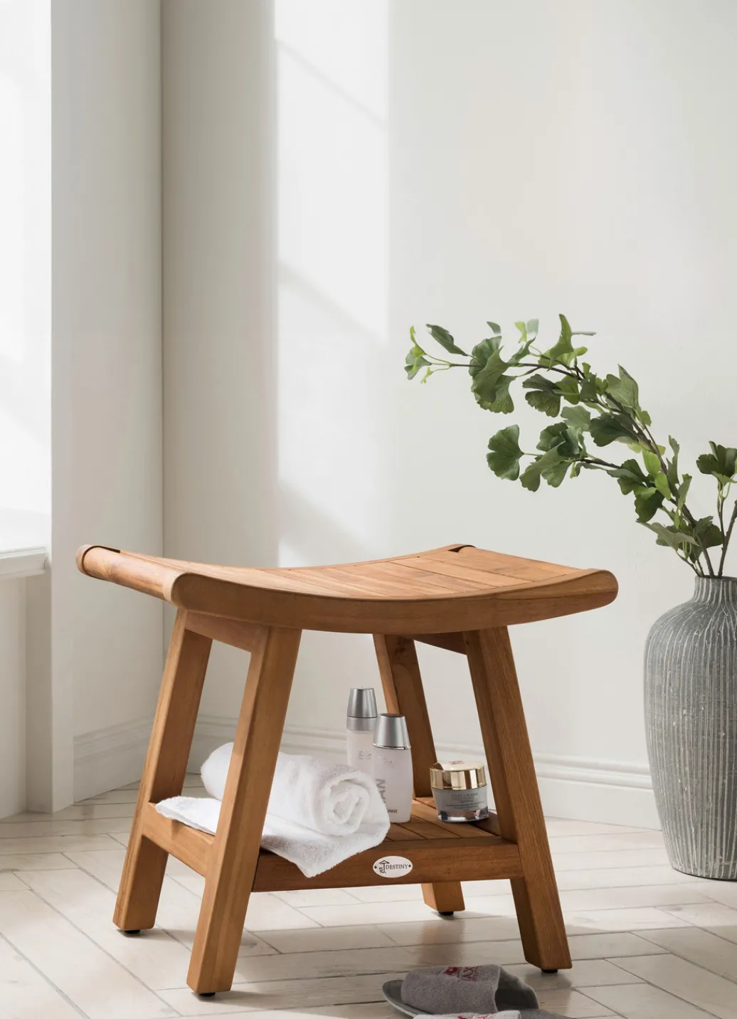 Badhocker aus robustem, massivem Teakholz