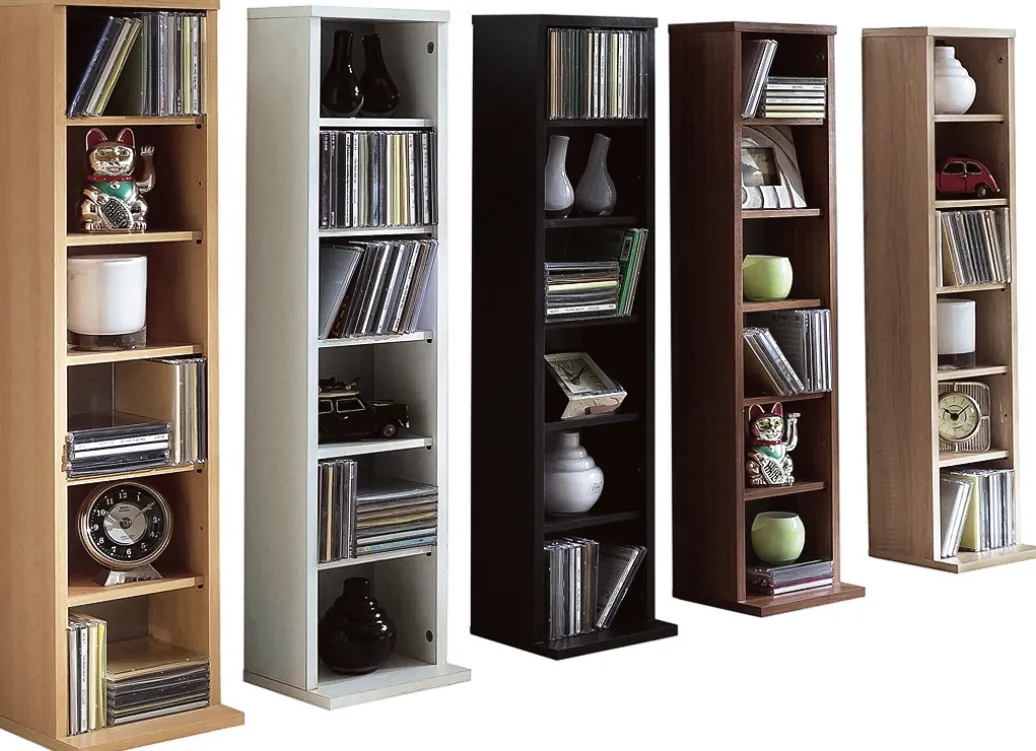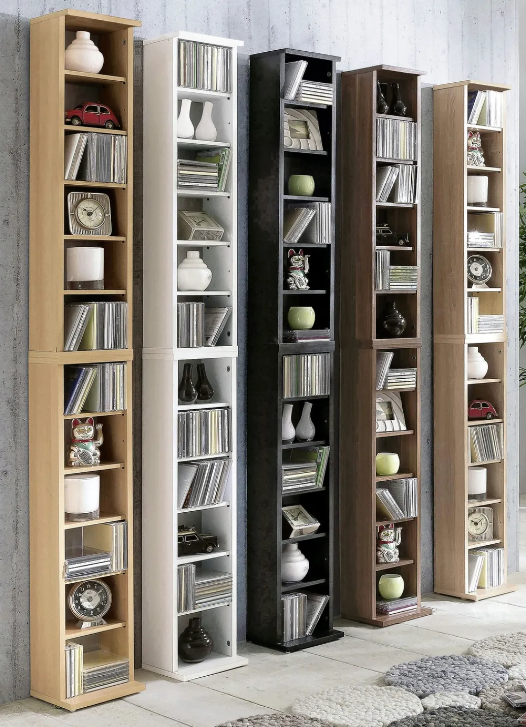 Mit 5 Einlegeböden. Für 102 CDs, 36 DVDs oder 20 Videos