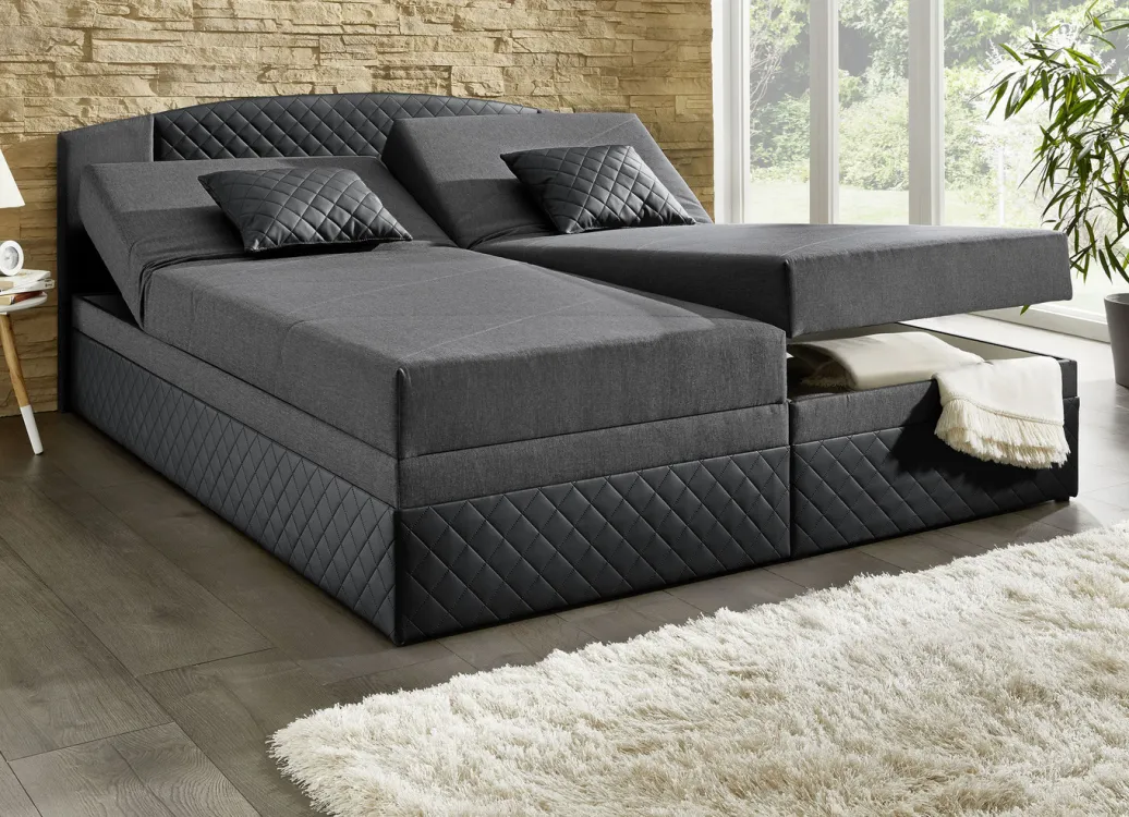 Boxspringbett mit Kopfteilverstellung und 2 Dekokissen