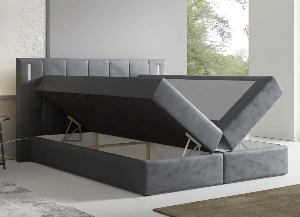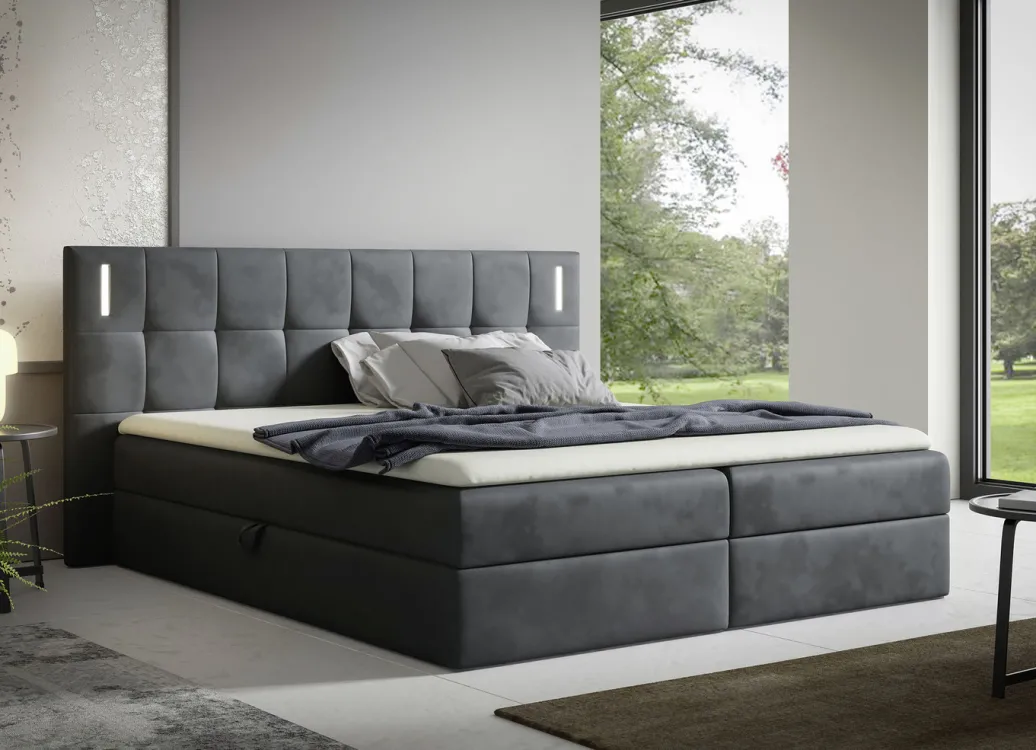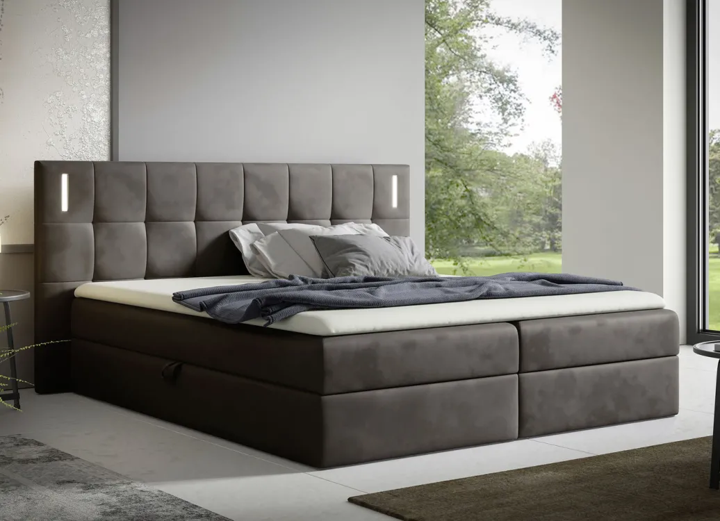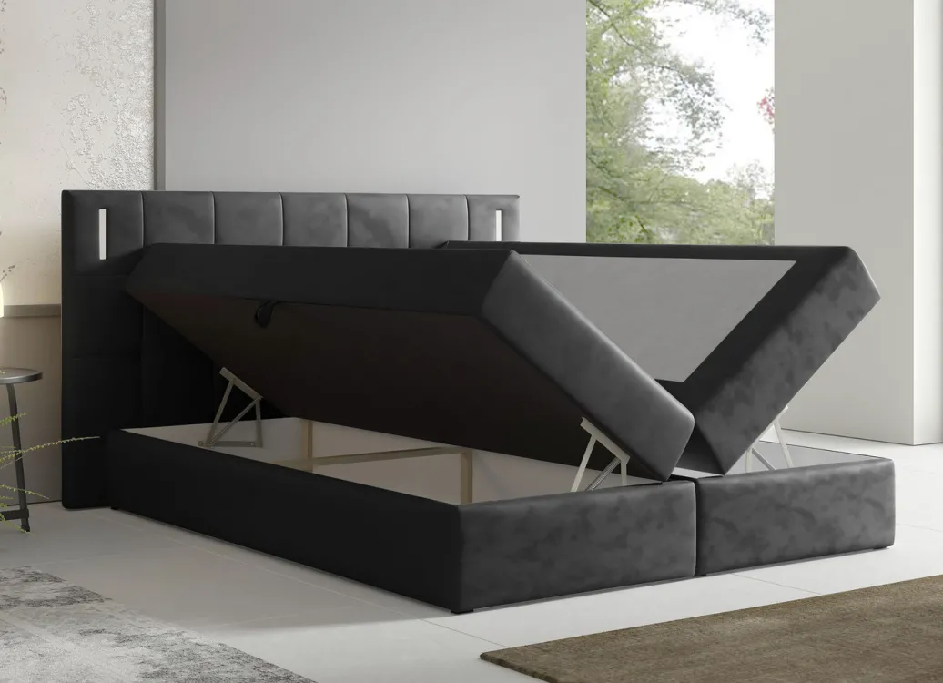 Boxspringbett mit LED-Beleuchtung und Topper