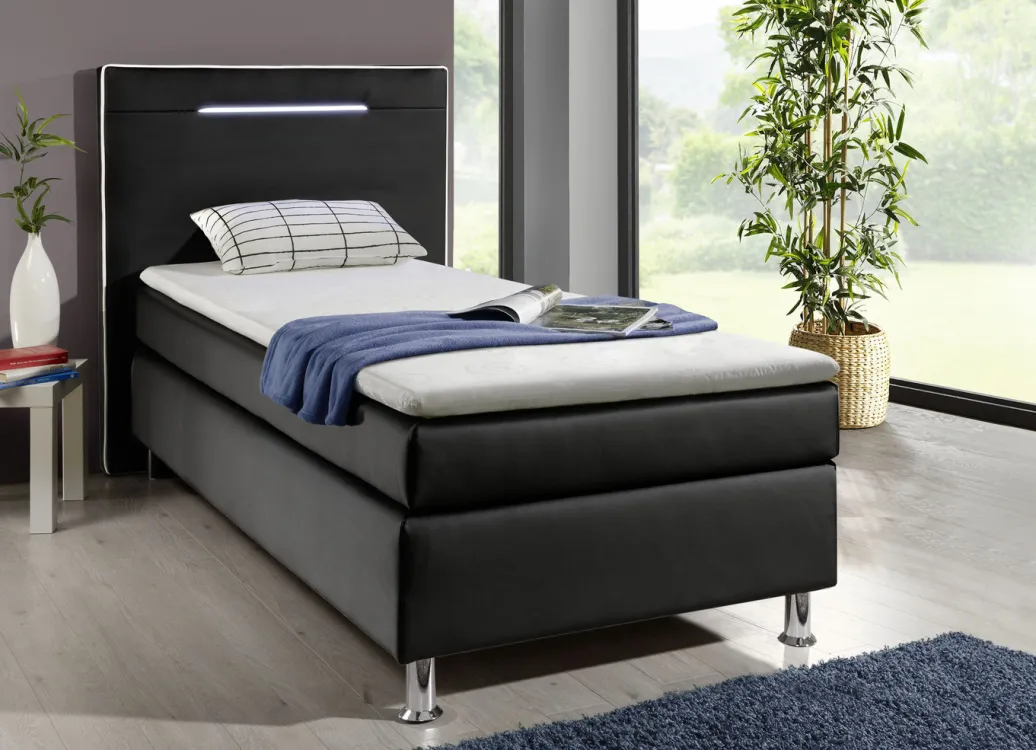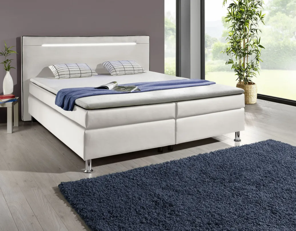 Boxspringbett mit LED-Beleuchtung mit einer Liegefläche von 90/200 und in Weiss.