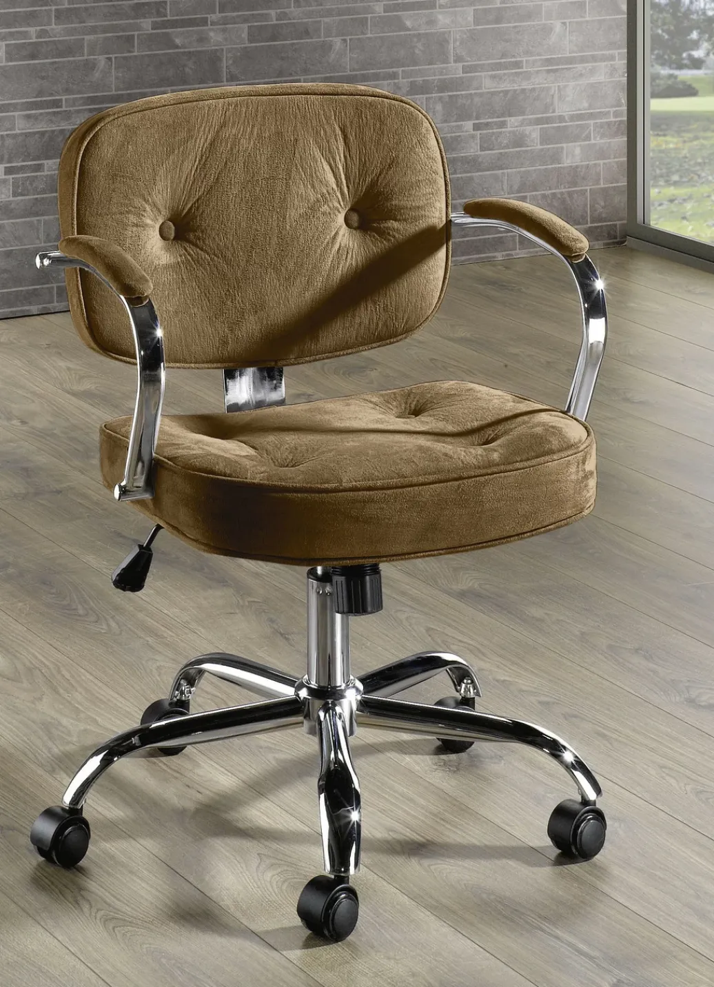 Bürostuhl mit Sicherheitsgasdruckfeder und Härtegradeinstellung in Braun.