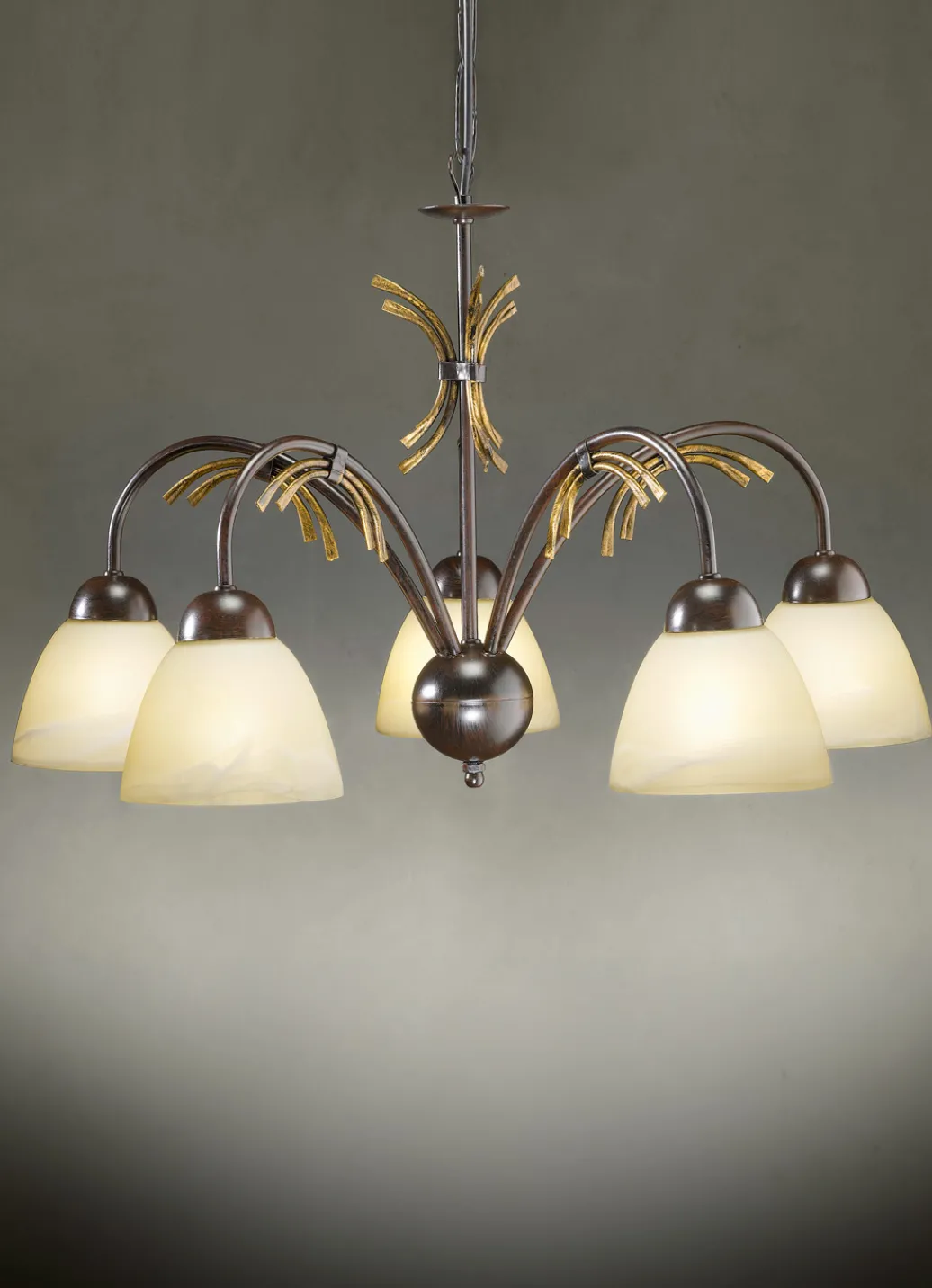 Pendelleuchte, 5-flammig, mit Gestell aus Eisen