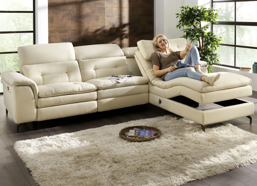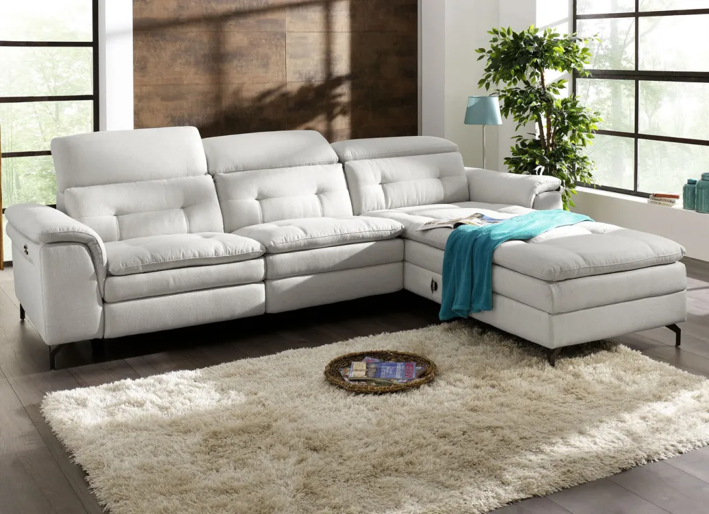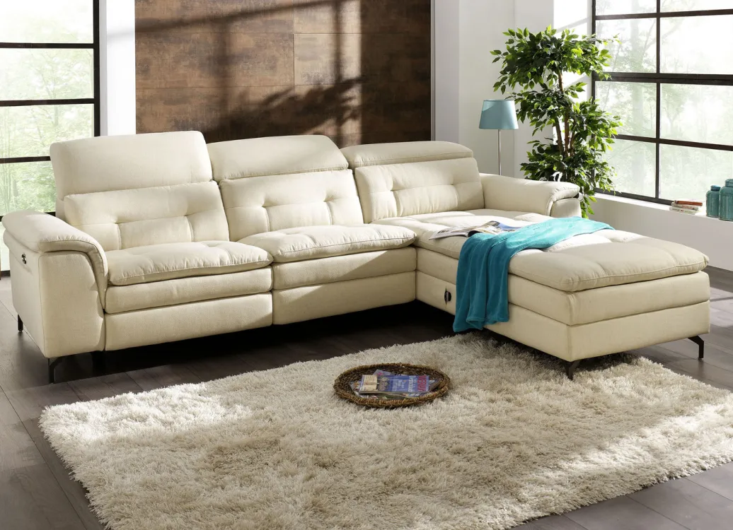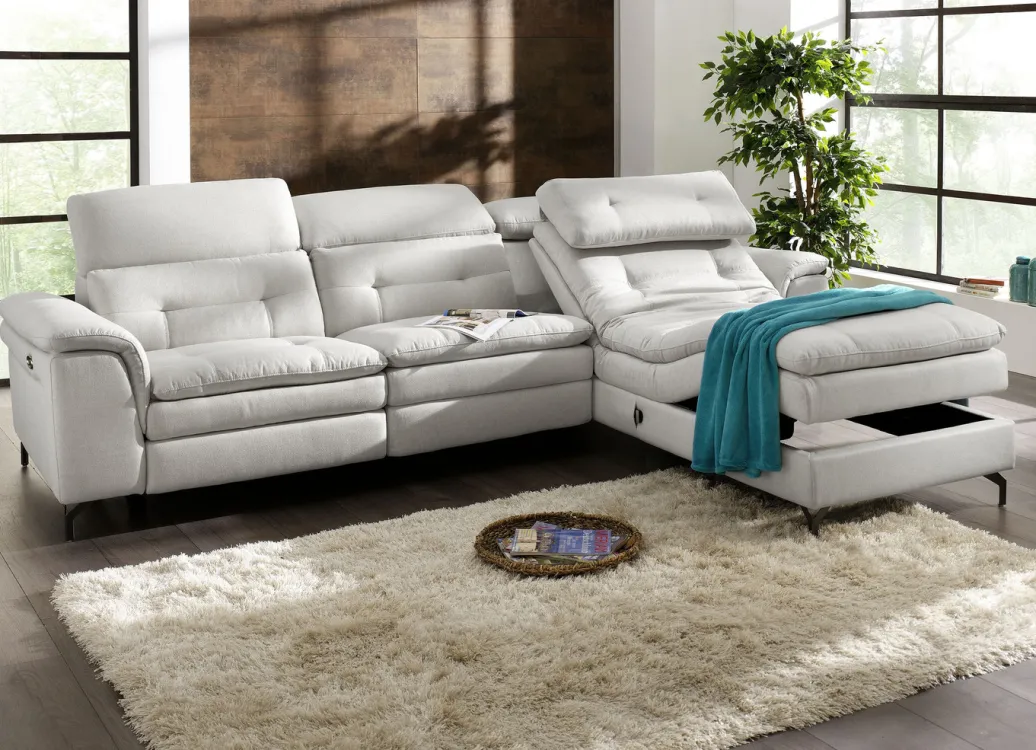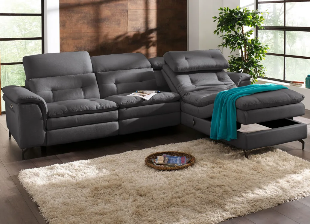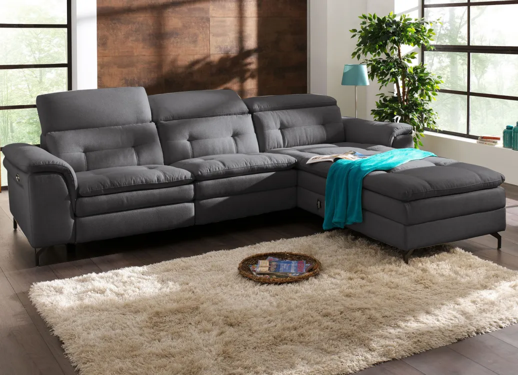 Mit ihrer hochwertigen Verarbeitung und dem dezenten Charme wird diese besonders komfortable Polsterecke mit Relax-Funktion zum neuen Highlight in Ihrem Wohnzimmer werden! Auf stabilem Holzgrundgestell mit bequemer Polsterung aus Schaumstoff und Gänsefedern.