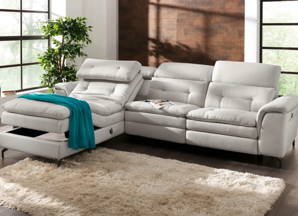 Polsterecke mit verstellbarer Kopfstütze und Ottomane