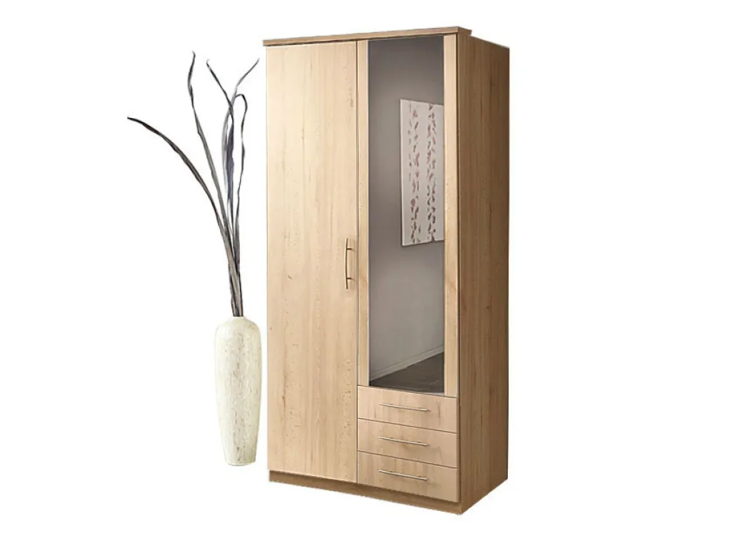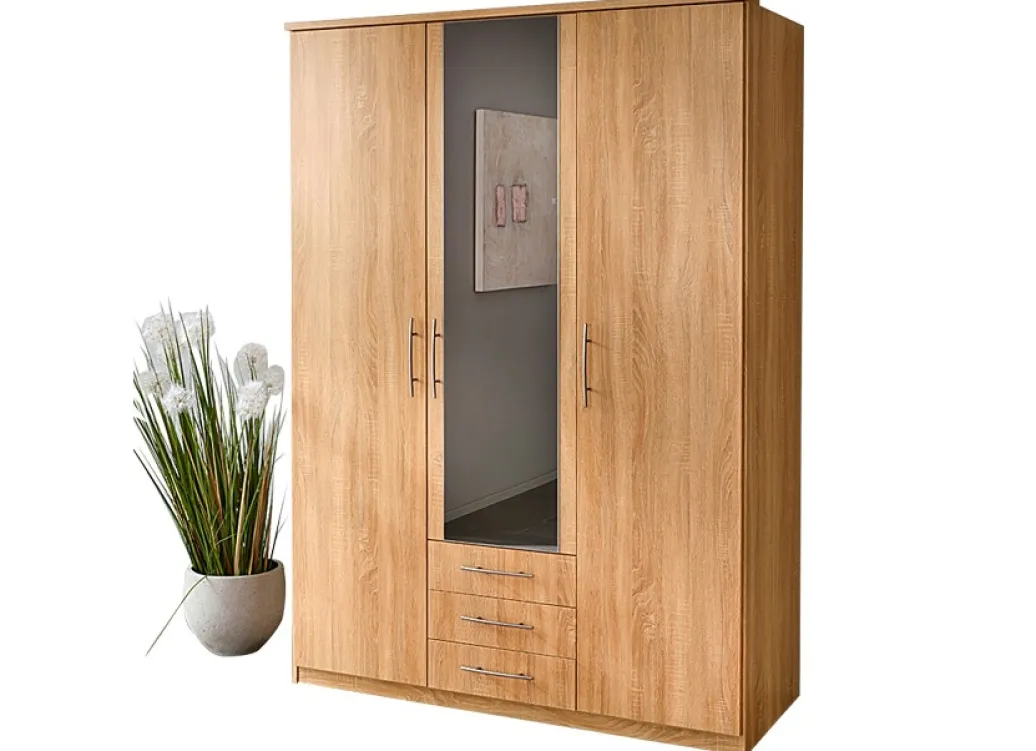 Komfortables, vorteilhaftes Wohnen: Schlafzimmerprogramm in Buche livorno, Weiß oder Eiche sonoma. Schubladen mit Metallführungsschienen. Mit Aufbau-Anleitung