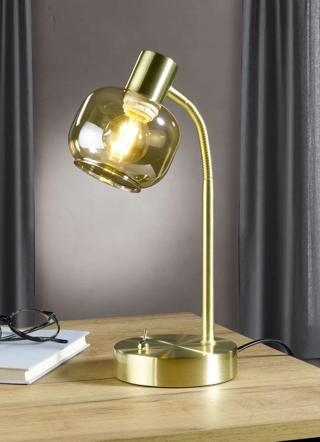 Stilechte Tischleuchte mit getöntem Glas
