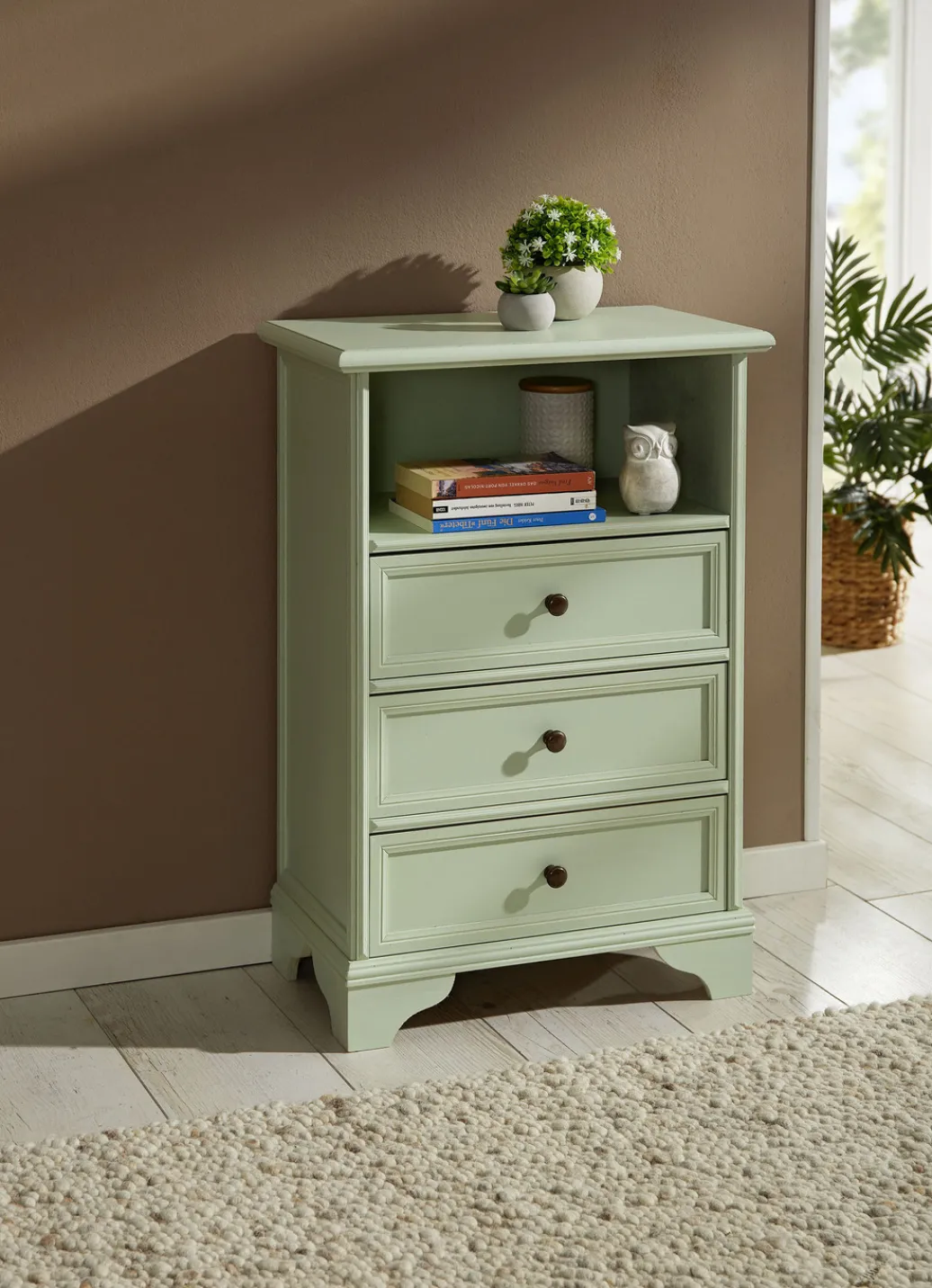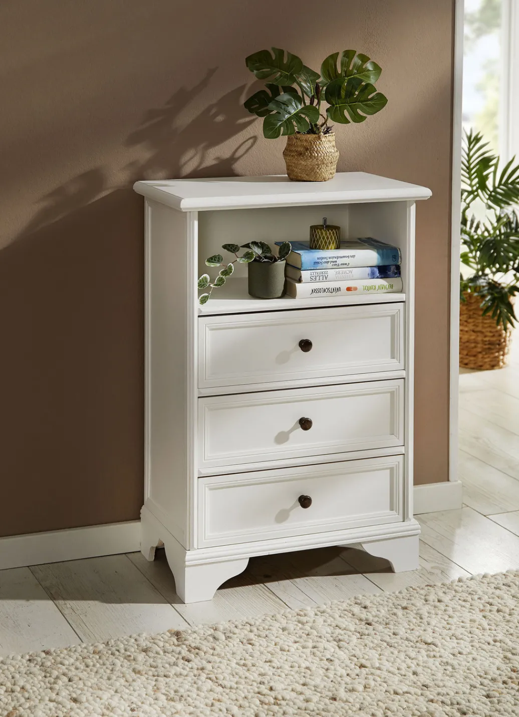 Mit Ihrer zeitlos schönen Optik wird diese teilmassive Kommodenserie mit stilvollen Metallknöpfen an den Schubladen und Türen ein echter Hingucker in Ihrem Zuhause. Die Lieferung erfolgt aufgebaut.
