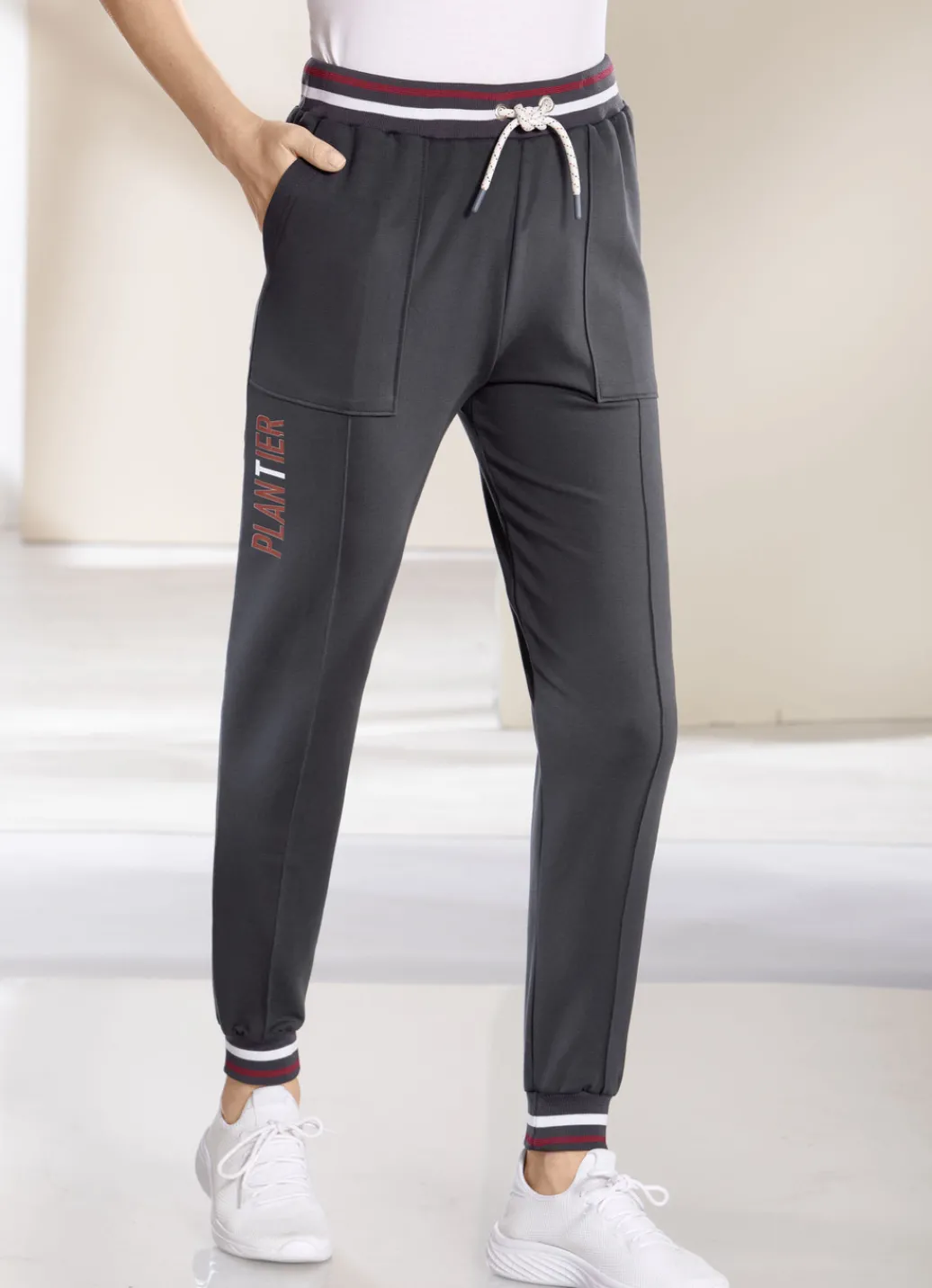 „Plantier”-Freizeithose für Damen mit Durchzugsband und Stopper am elastischen Bund, aufgesetzten Taschen, Biesennaht sowie elastischen Beinabschlüssen.