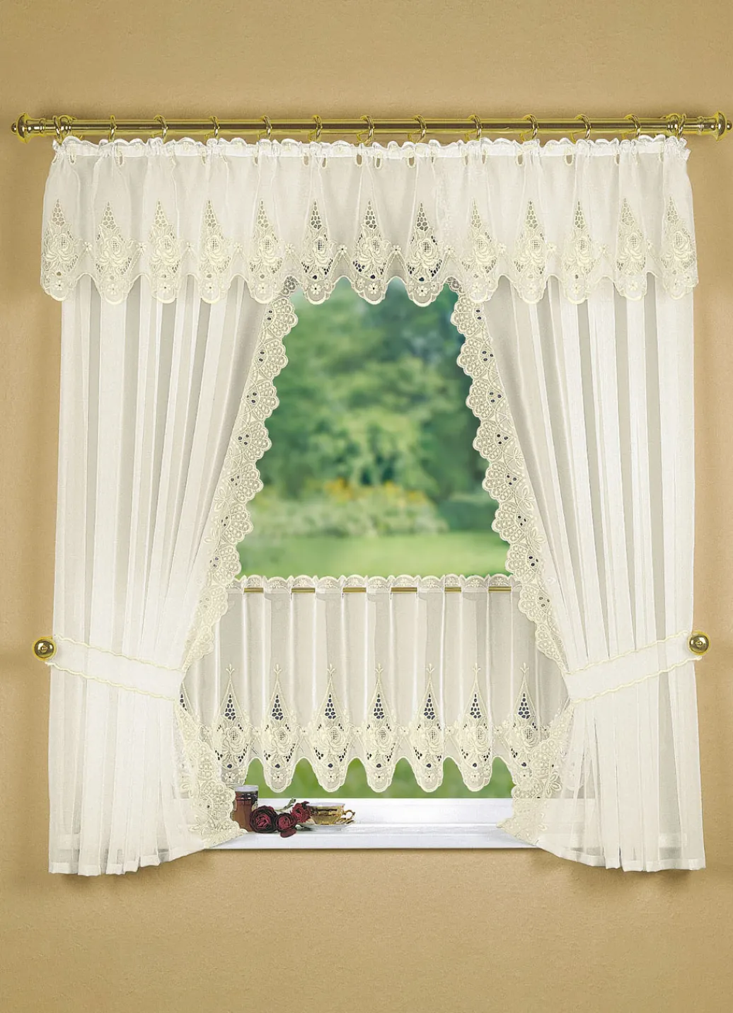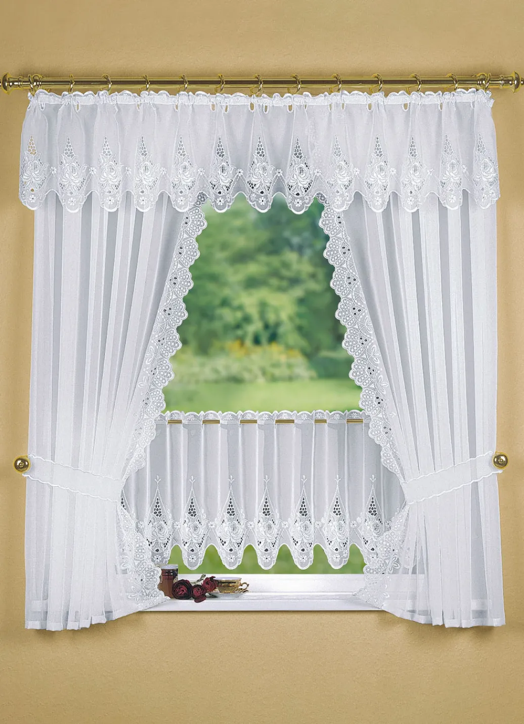 Entzückende Fensterdekoration mit echter Plauener Stickerei. Voile 100% Polyester