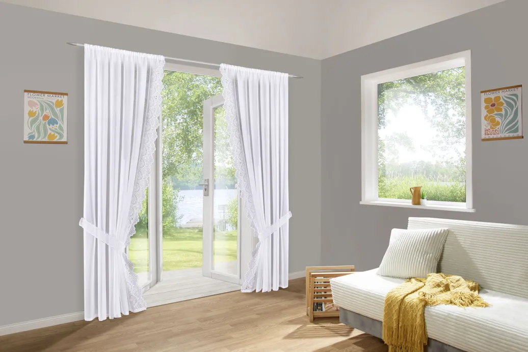 Charmanter Querbehang mit Stangendurchzug und zusätzlichem Universalschienenband