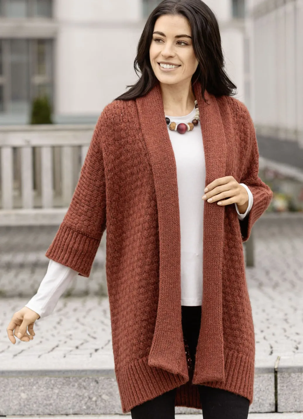 Strickjacke in Longform in Größe M(40/42) und in Terra Meliert.