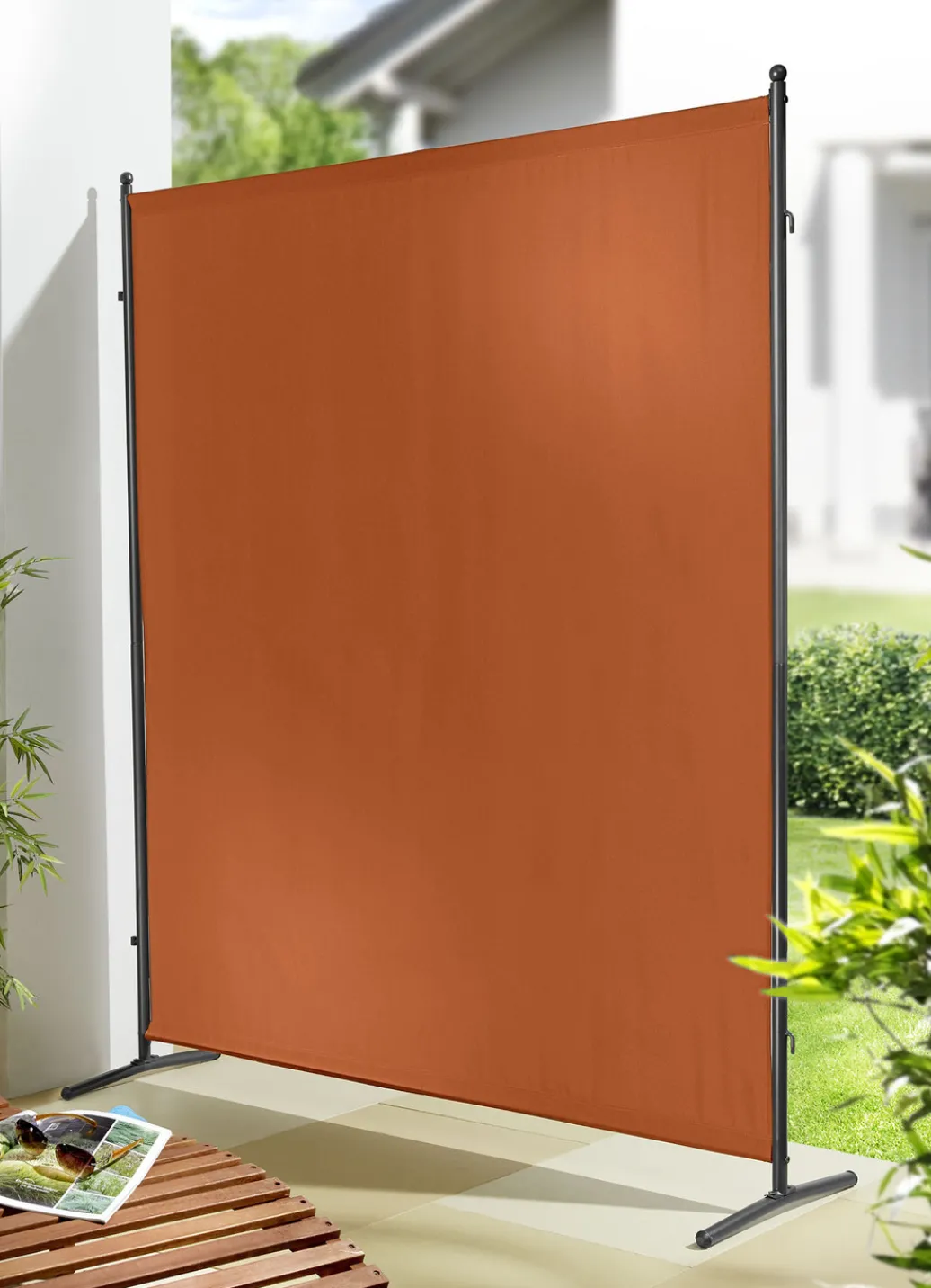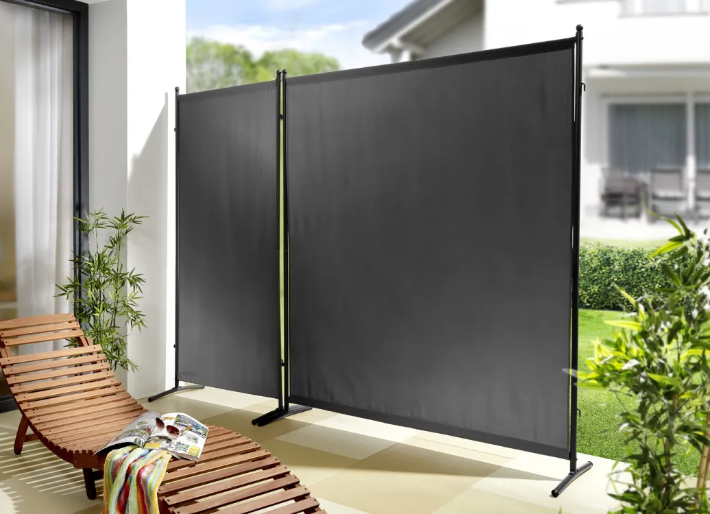 Sicht- und Sonnenschutz für Ihre Terrasse oder den Balkon. Die pulverbeschichteten Stahlrohrgestelle mit zwei Standstreben sind endlos miteinander zu kombinieren. Bezug aus Textilgewebe (100% Polyeser).