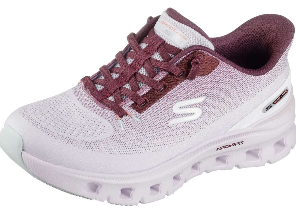 SKECHERS, trendige Damen-Sneaker, mit geformter Slip-Ins Fersenplatte in Weiss-Bordeaux und in Größe 41.
