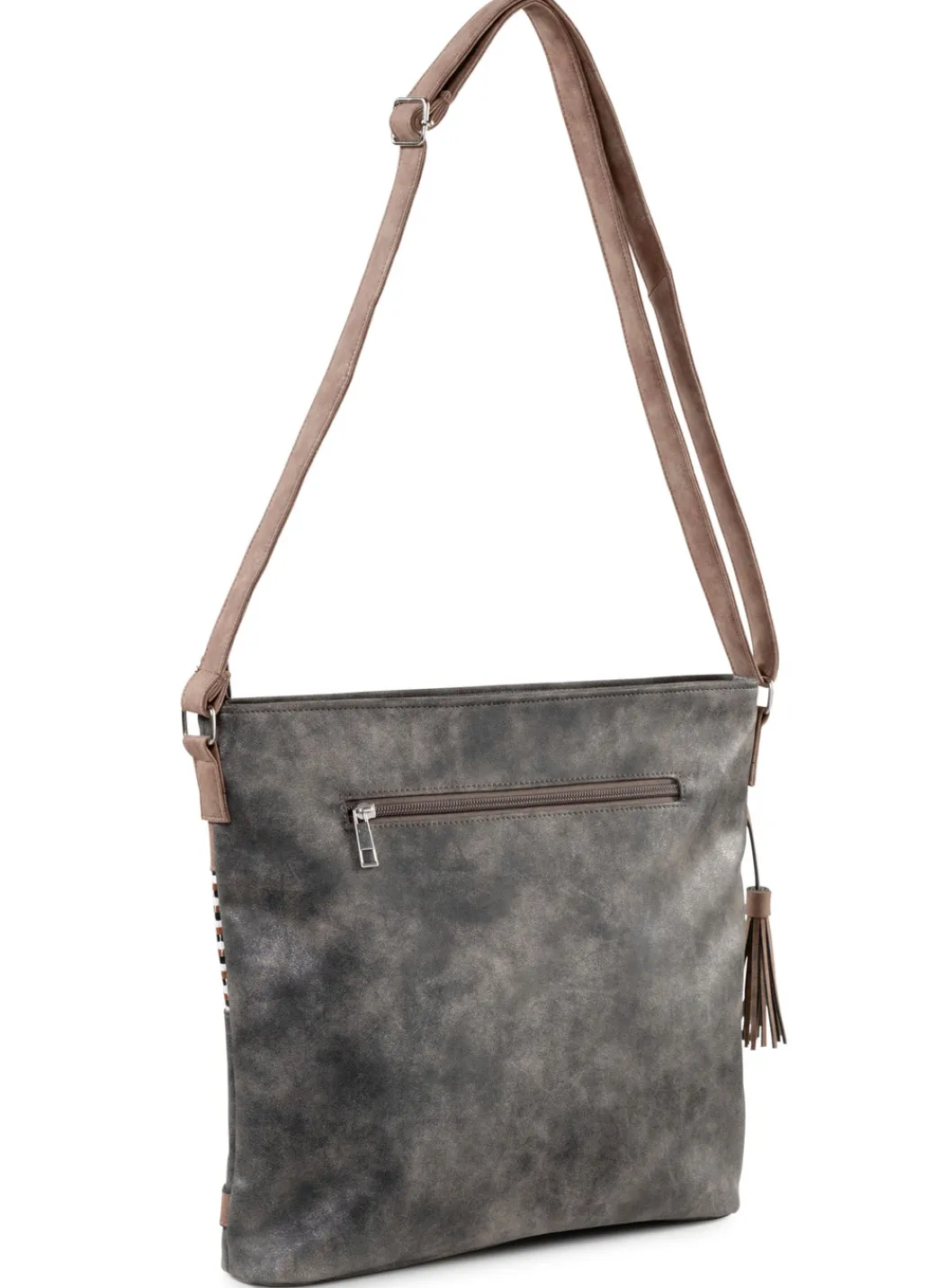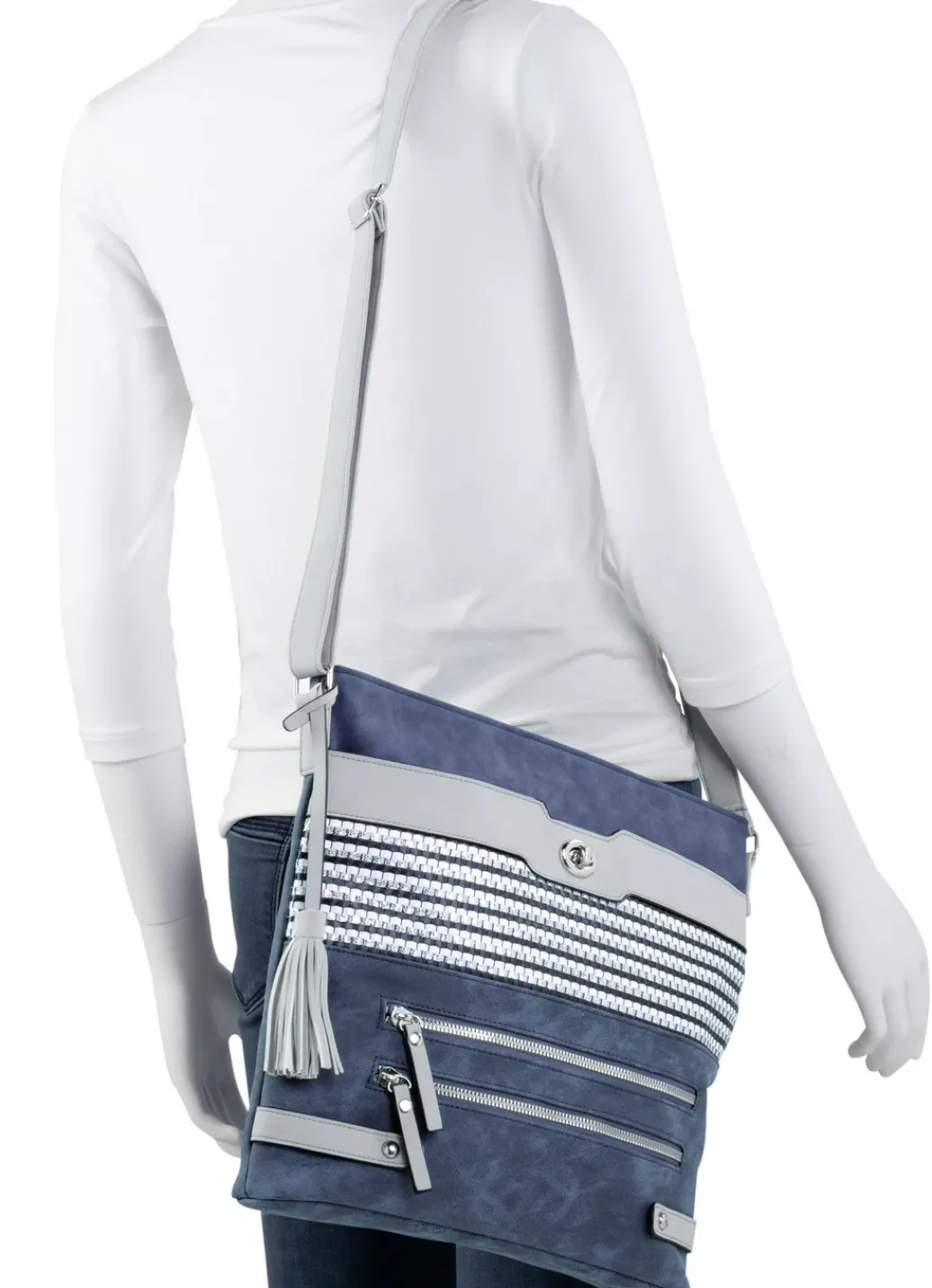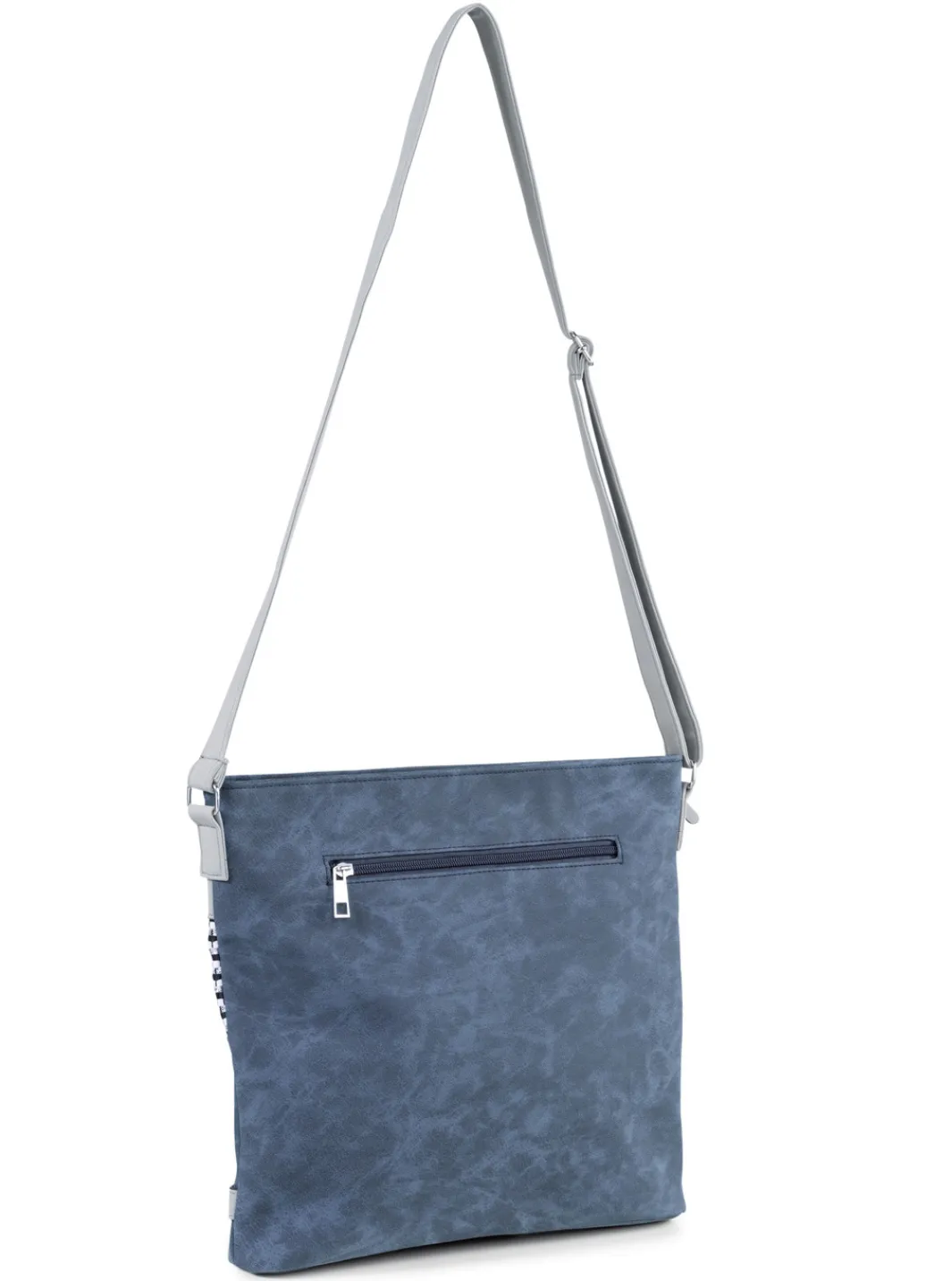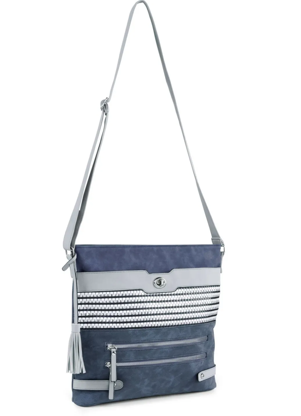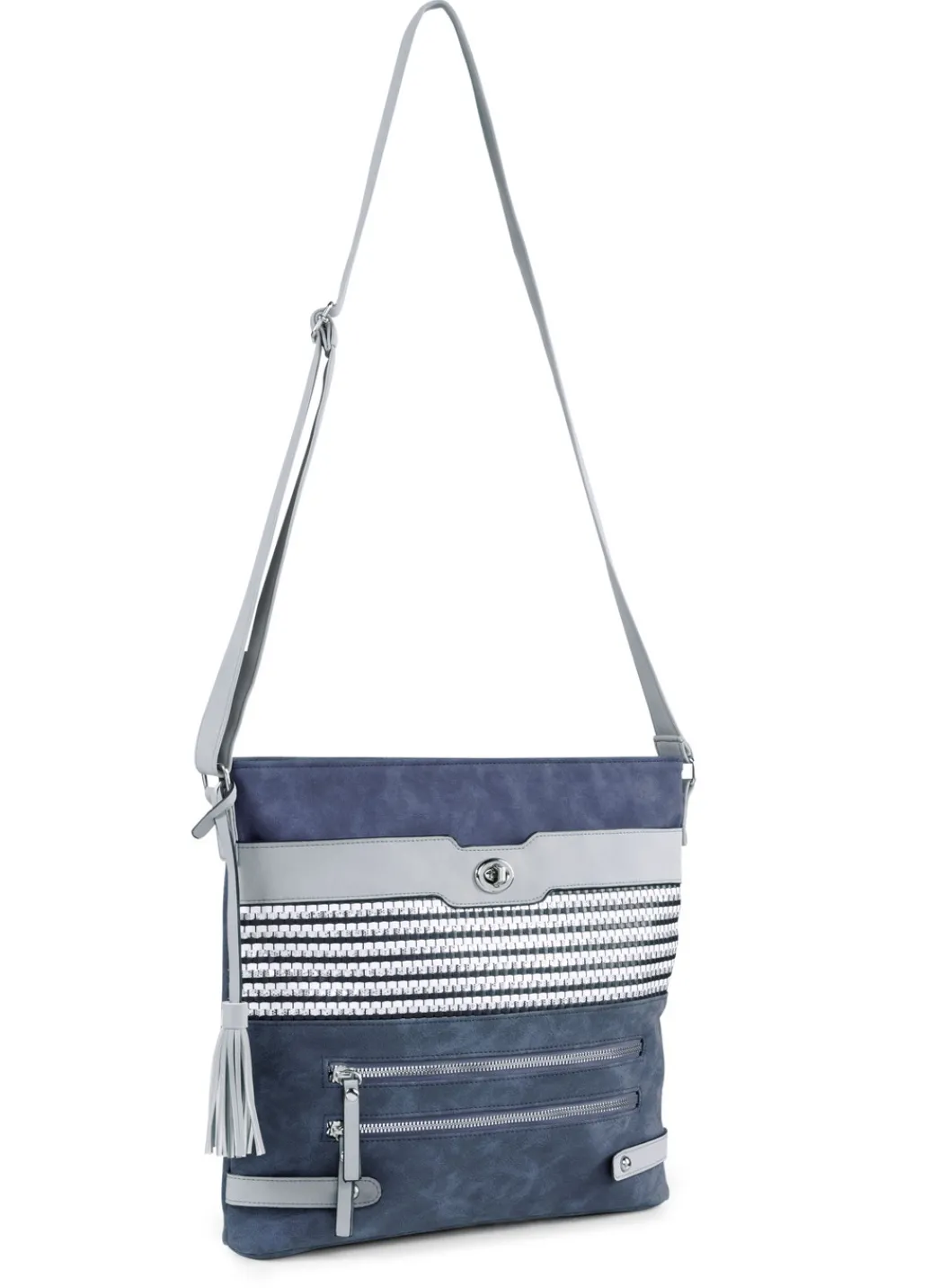 Tasche mit teilweise glitzernden Flechtdurchzügen in Jeans.