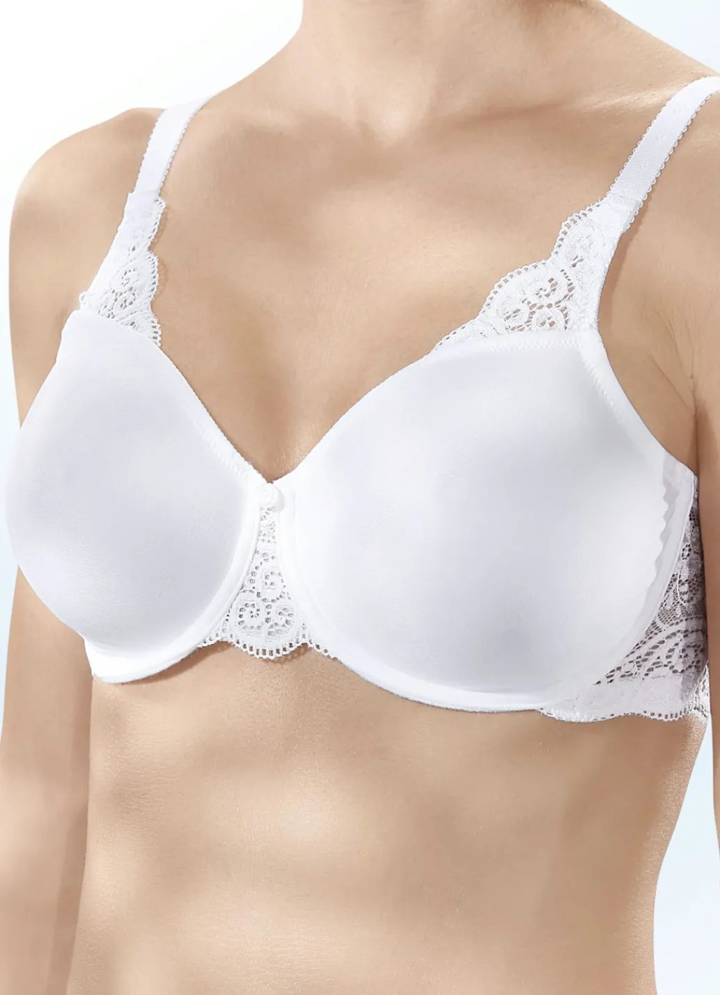 „Triumph-Amourette“-Minimizer-Bügel-BH: Elastikspitze im Vorder- und Rückteil, vorgeformte Cups sowie verstellbare Stretchträger.