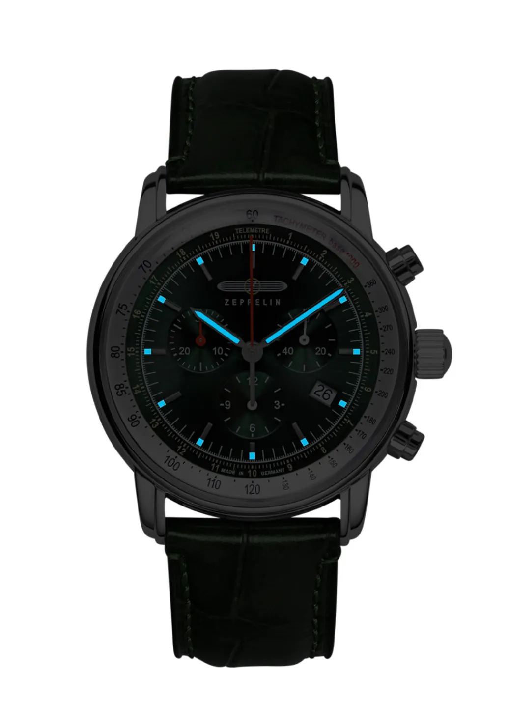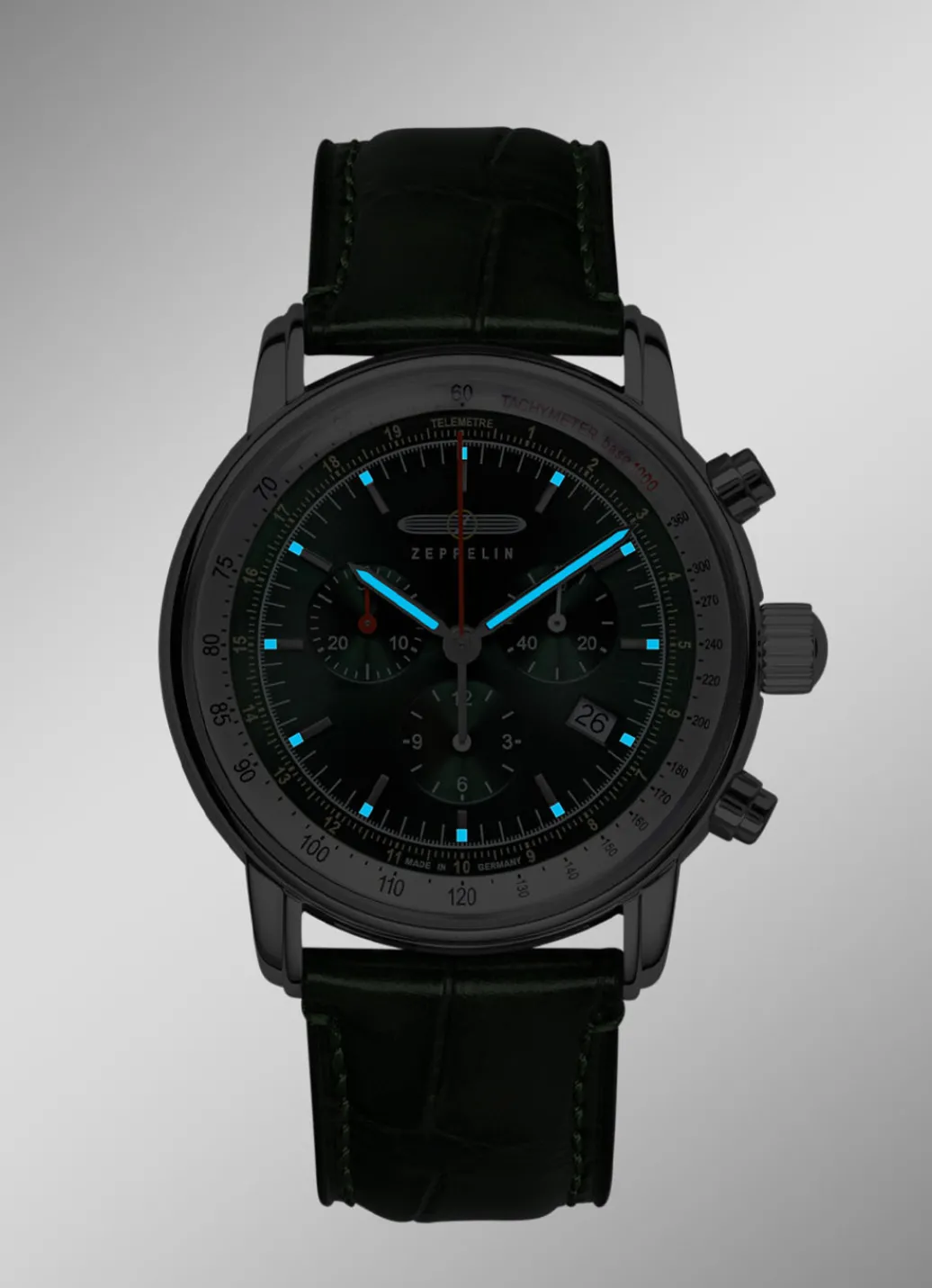 Die Zeppelin LZ 14 Marine ist mehr als nur eine Uhr. Sie ist ein Chronograph, der Ihnen viele nützliche Funktionen bietet. Sie können die Zeit stoppen, das Datum ablesen und die Leuchtzeiger im Dunkeln sehen. Die Uhr ist bis zu 5 bar wasserdicht, sodass Sie sie auch beim Schwimmen oder Tauchen tragen können.